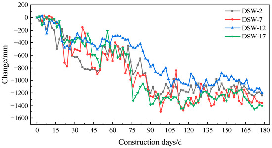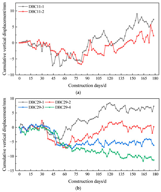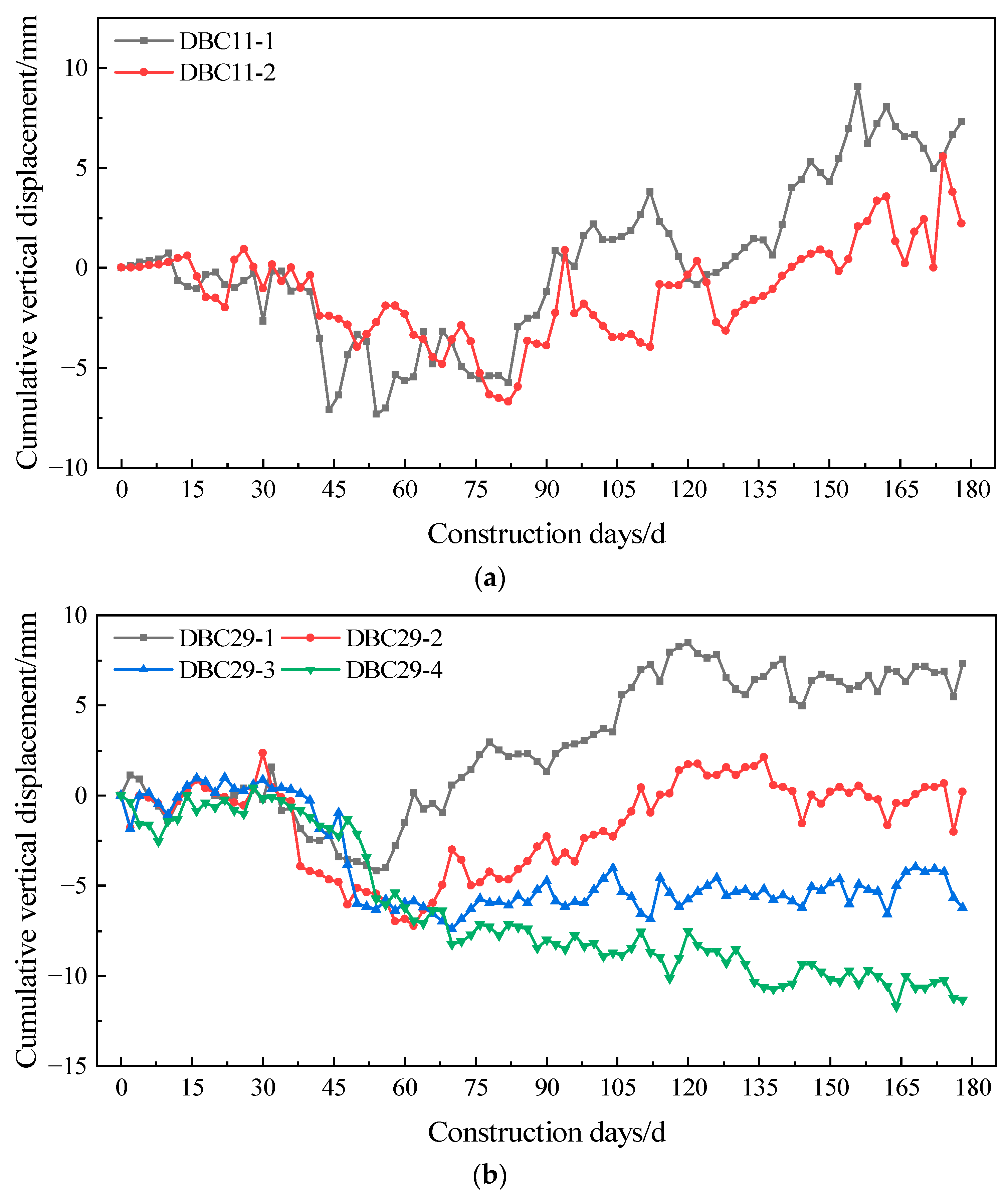 | Construction Day | DBC11-1 (mm) | DBC11-2 (mm) | DBC29-1 (mm) | DBC29-2 (mm) | DBC29-3 (mm) | DBC29-4 (mm) |
