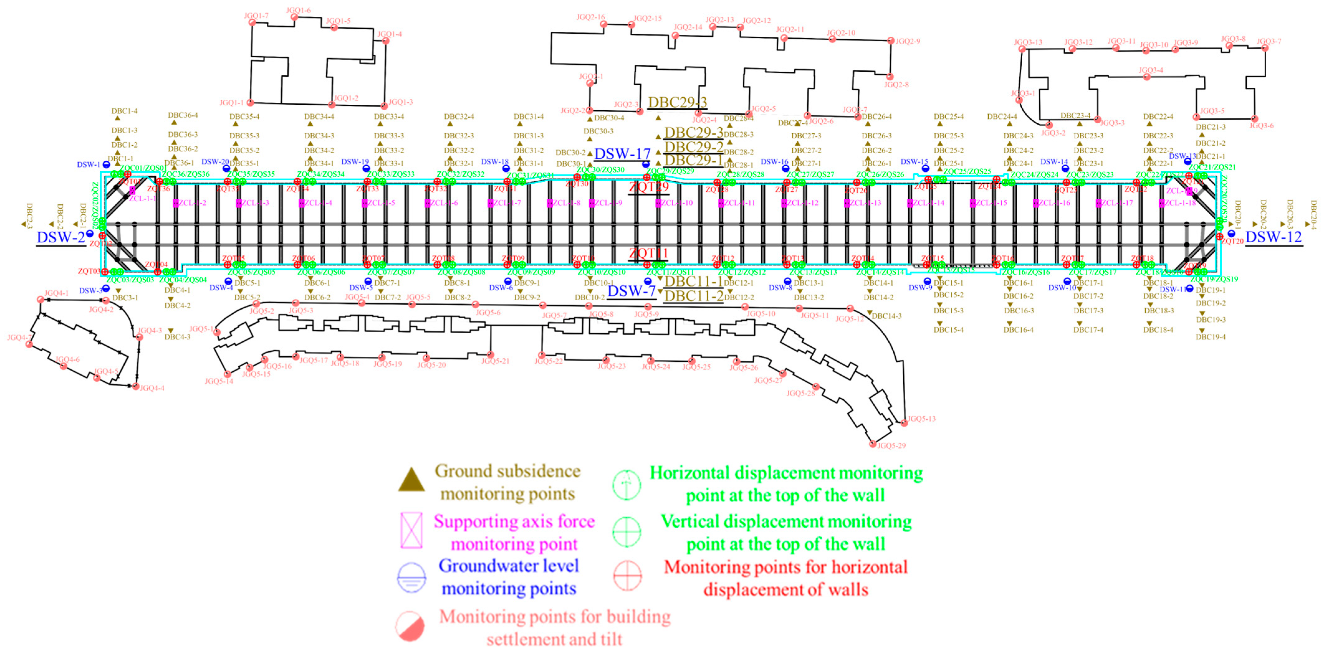 APA StyleFeng, W., Xu, J., Zhang, R., Yan, Z., Fu, L., Zhu, Y., Zhang, G., & Chen, Z. (2025). Study on Excavation Response of Metro Station Foundation Pit in Water-Bearing Strata Adjacent to Tall Buildings. Buildings, 15(21), 3982. https://doi.org/10.3390/buildings15213982