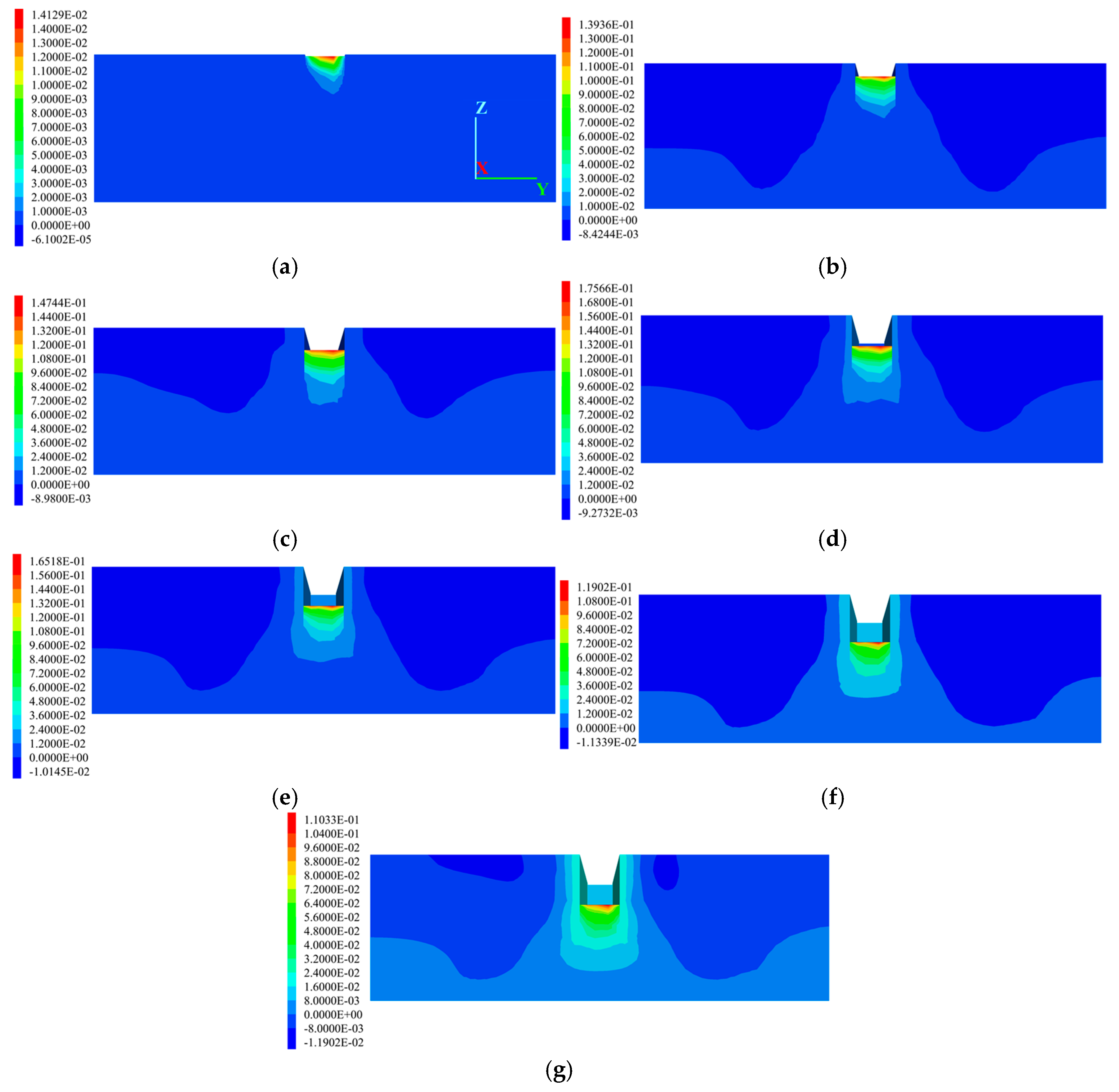 - Xiang, X. Deformation Characteristics of Deep Excavation in Water-Rich Sandy Gravel Strata Based on Fluid-Solid Coupling. Railw. Stand. Design. 2016, 60, 80–84. (In Chinese) [Google Scholar]