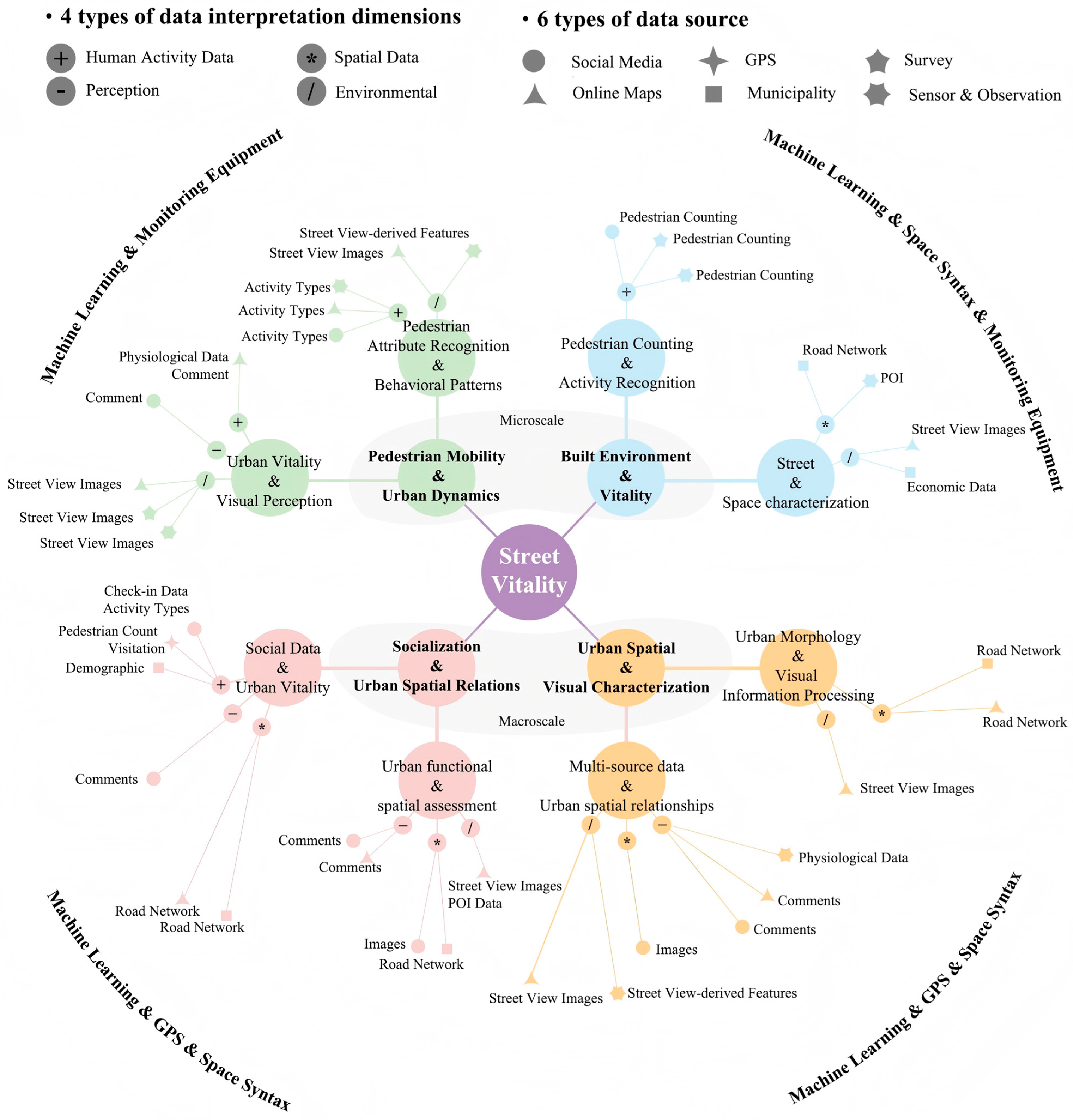 - What are the key technologies currently used in street vitality research? How do these technologies evolve, and what is their applicability?