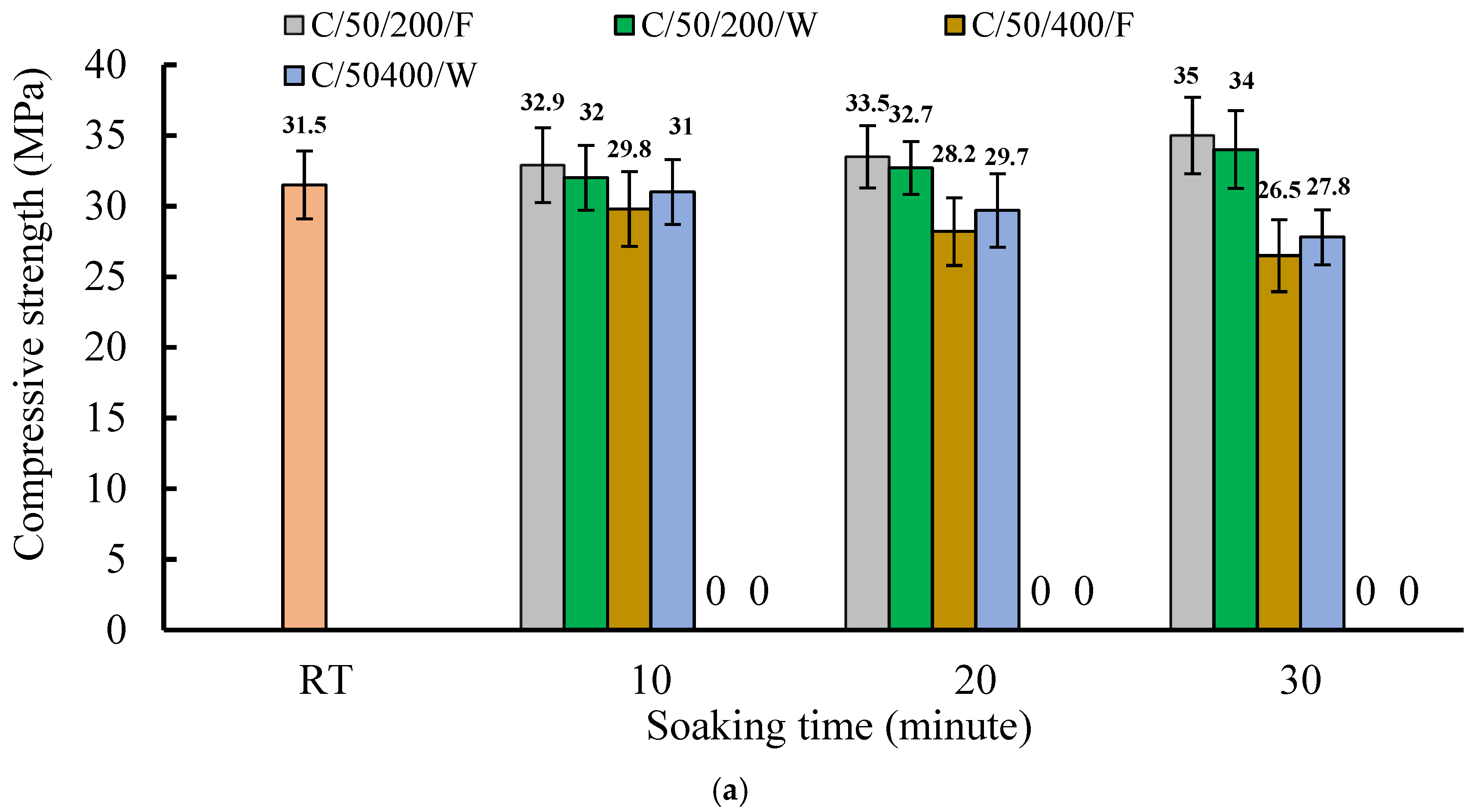 4.1. The Influence of Heating Duration and Cooling Methodology on the Compressive Strength of the S/50 Mixture