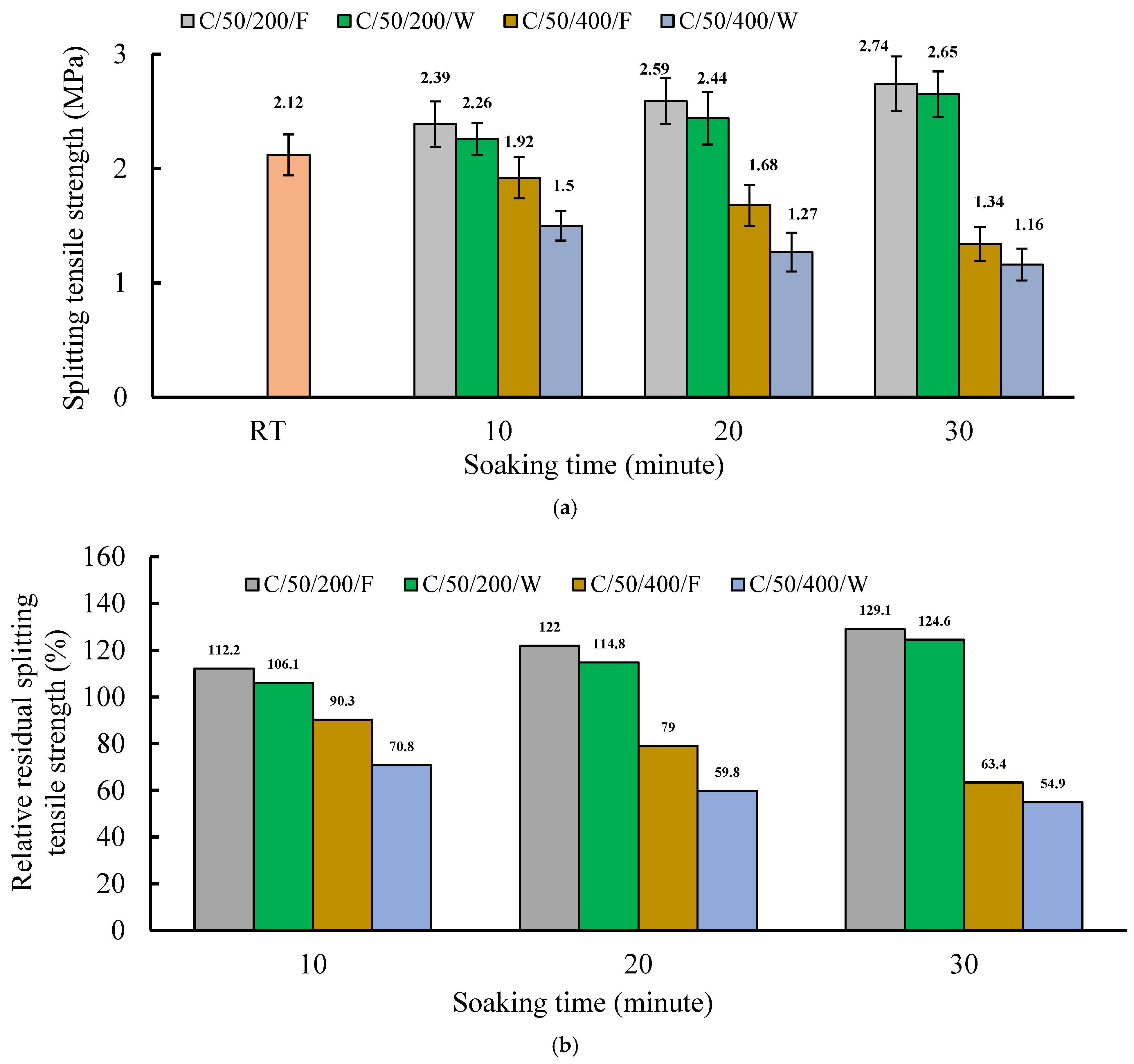 4.4. The Influence of Heating Duration and Cooling Methodology on the Splitting Tensile Strength of C/50 Mixture