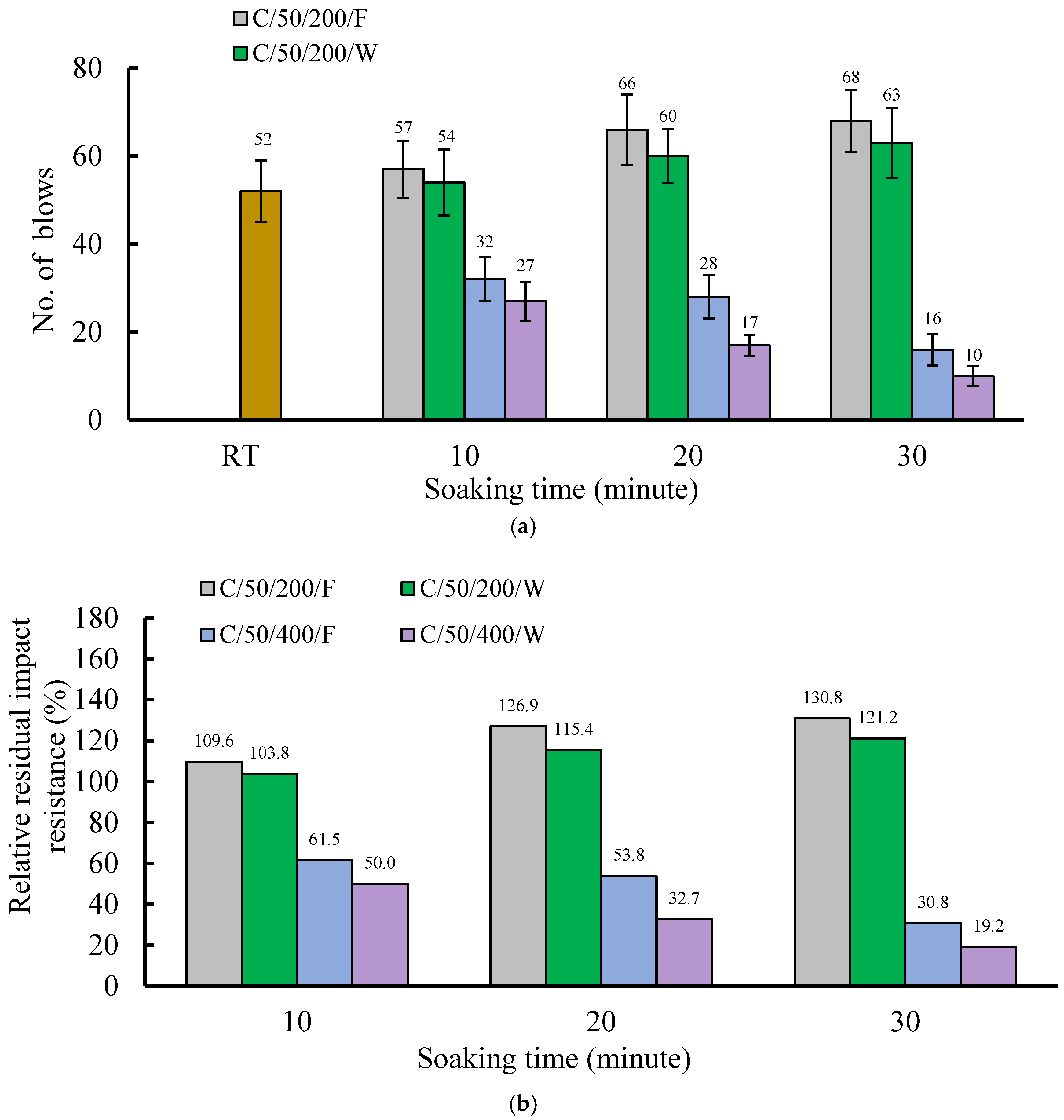 4.6. The Influence of Heating Duration and Cooling Methodology on the Impact Resistance of the C/50 Mixture