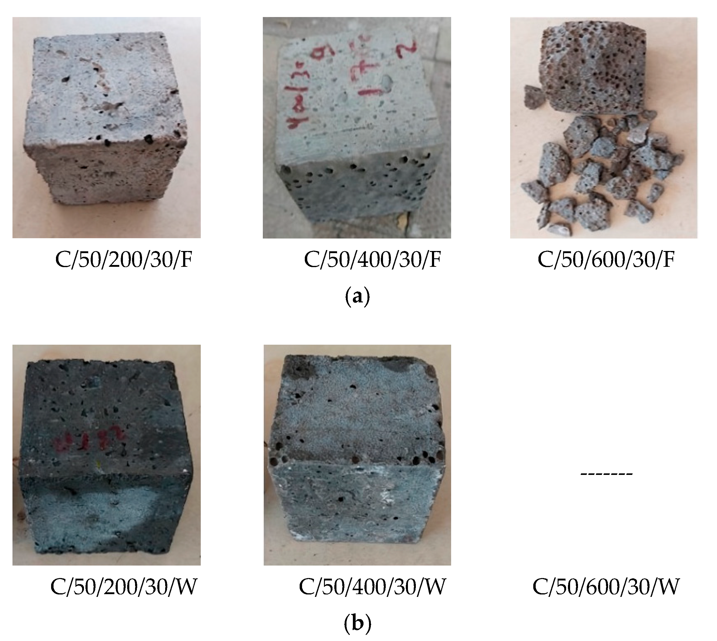 - The cooling method also influenced the results: furnace-cooled specimens showed higher strength at 200 °C due to gradual stress release, while water-quenched ones retained slightly more strength at 400 °C owing to partial rehydration. At 600 °C, this effect became negligible as thermal damage prevailed.