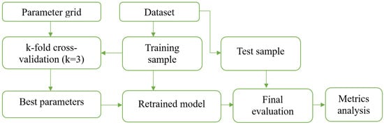 The model’s execution process, which incorporates cross-validation and a parameter grid, is presented in Figure 5. The training and test sets were split 80/20.