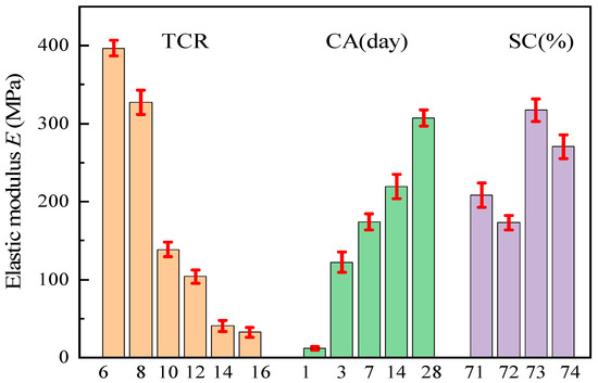 Figure 9. Effect of TCR, CA, and SC on the elastic modulus of CTB.