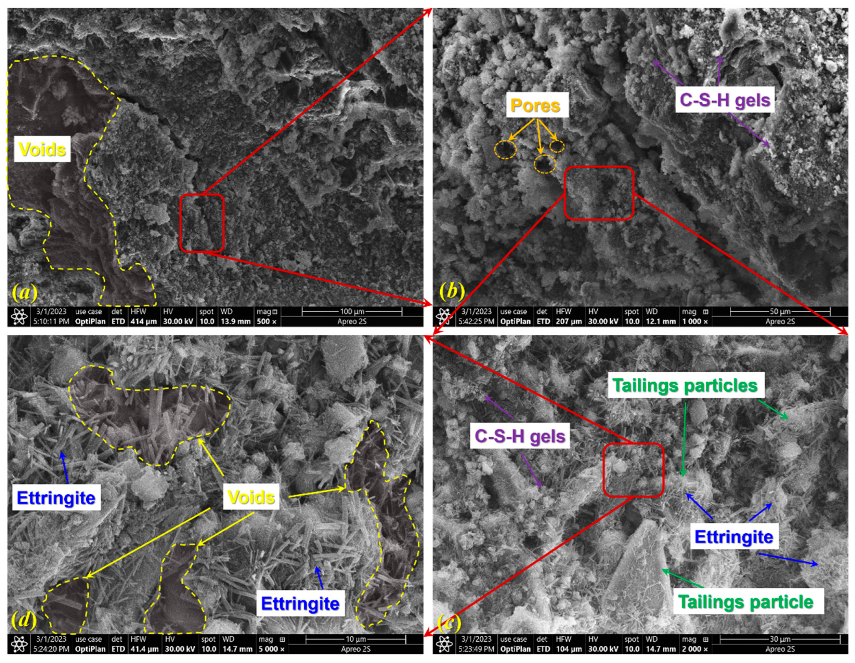 - Wang, S.; Song, X.; Wei, M.; Liu, W.; Tao, T. Strength characteristics and microstructure evolution of cemented tailings backfill with rice straw ash as an alternative binder. Constr. Build. Mater. 2021, 297, 123780. [Google Scholar] [CrossRef]