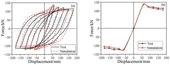 Load–displacement curves of test and simulation. (a) Hysteresis curve (b) Skeleton curve.