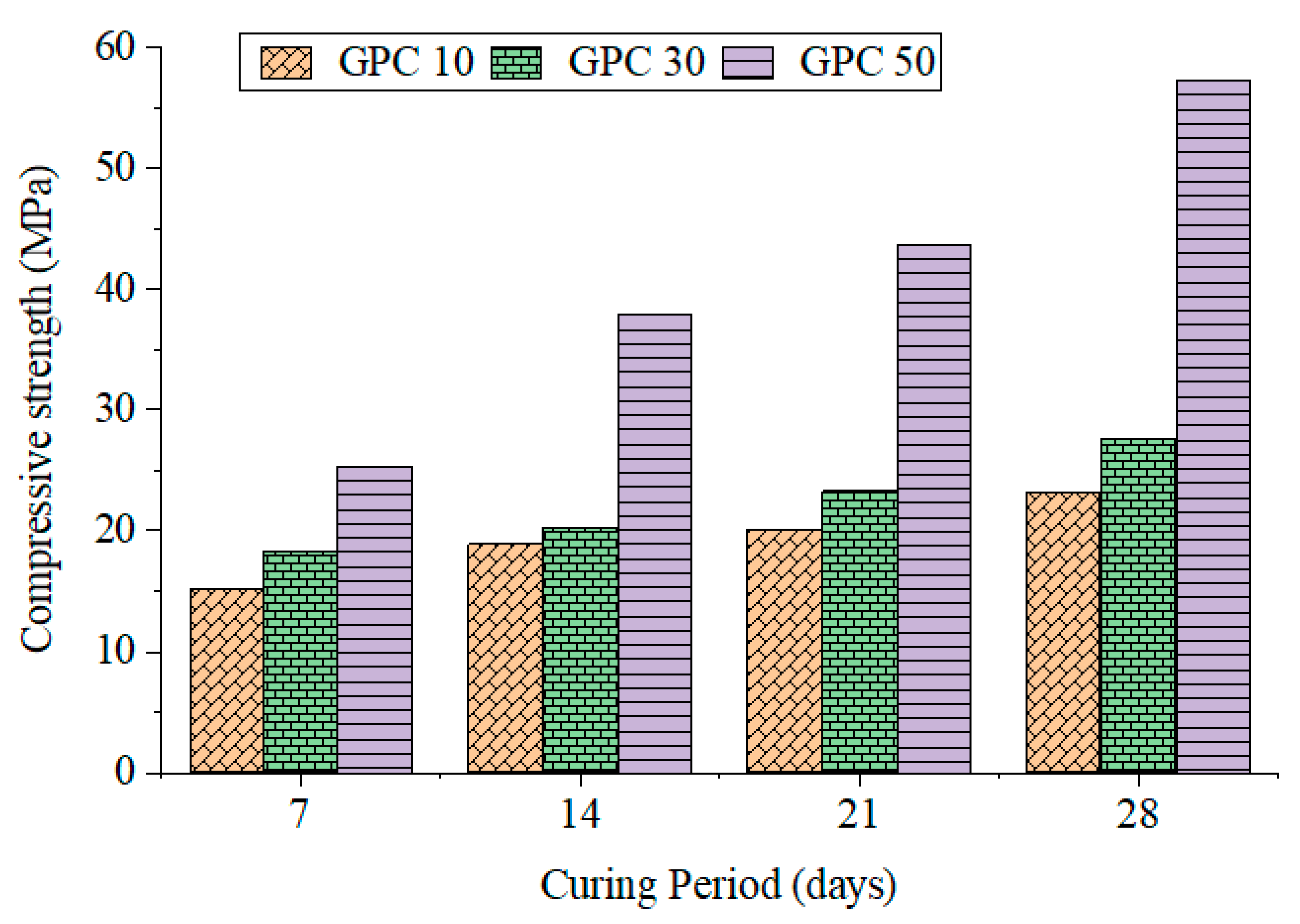 - To investigate the mechanical properties of GPC with 10%, 30%, and 50% GGBS replacement levels.