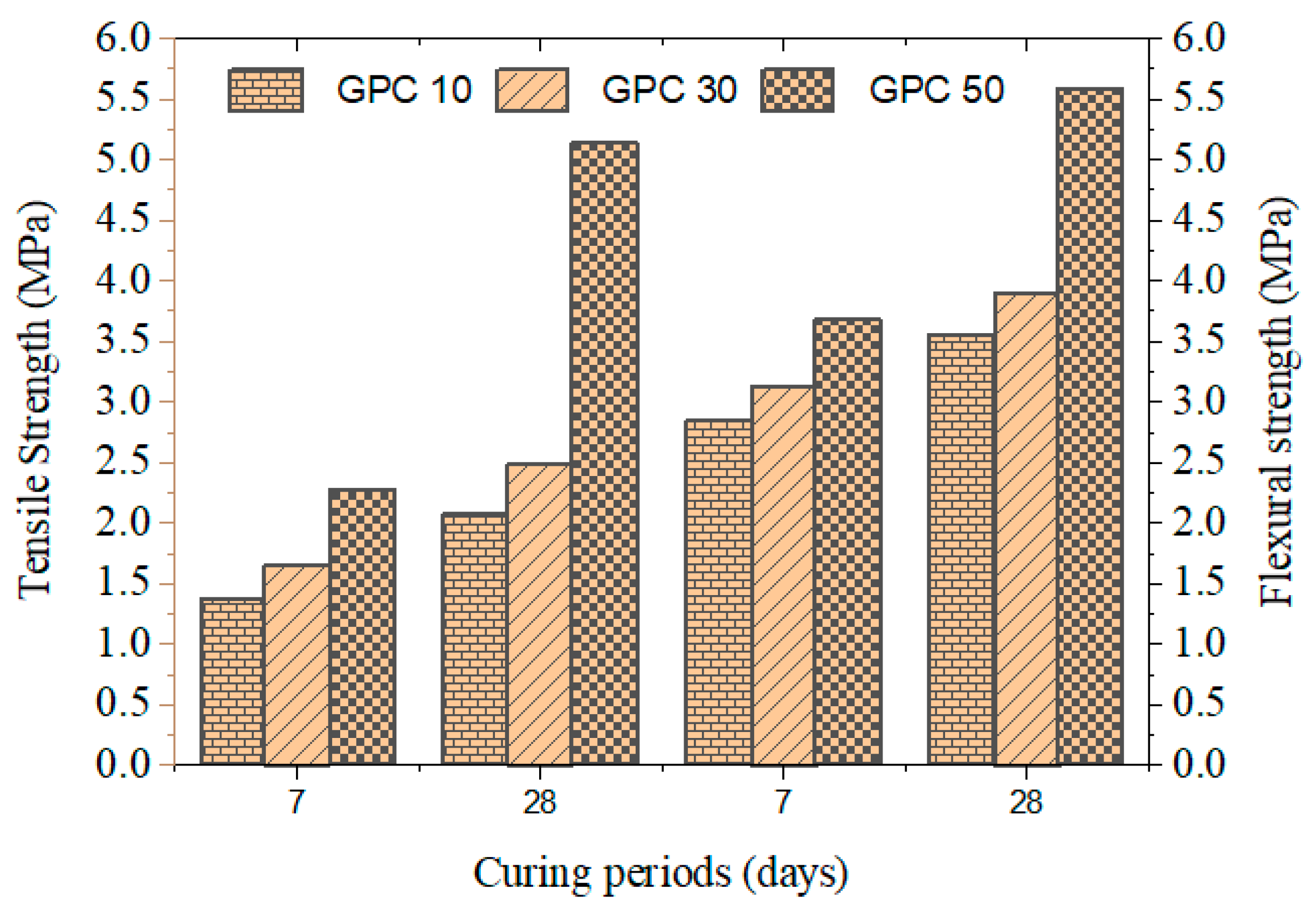 - Sulfuric acid exposure: The strength loss ranged from 28% (GPC10) to 23% (GPC50).