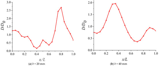 However, until now, no specific data have been obtained to determine the spatial variability of the water diffusion factor in concrete. Considering the water diffusion mainly occurs in the cement in concrete, it is reasonable to assume the correlation length of the water diffusion factor approaches the size of the aggregate particles, e.g., 20 to 40 mm for C30 concrete. Figure 6 shows typical random samples of the water diffusion factor with correlation lengths of 20 mm and 40 mm, using a variation coefficient of 0.5, based on the concrete strength variation. The remaining parameters were the same as those listed in Table 1 and Table 2. Notably, the smaller correlation lengths lead to more pronounced spatial variations in diffusion factors within the concrete.