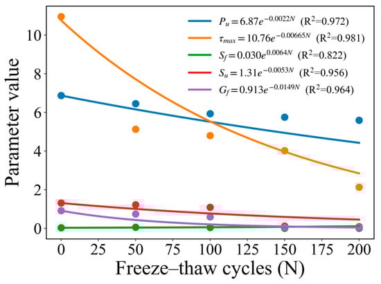Degradation of interfacial parameters under freeze–thaw cycles.