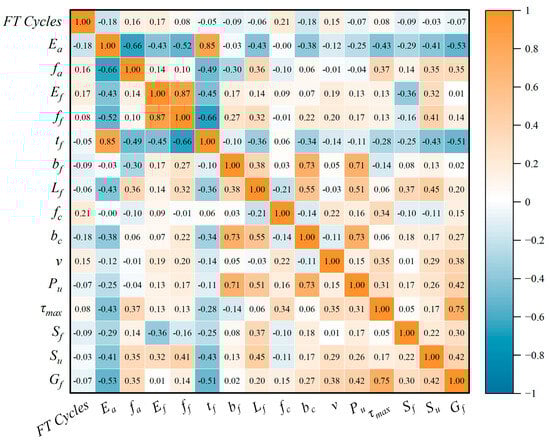 Moreover, to investigate the interrelationships among the variables in the dataset, Figure 10 displays the Pearson correlation coefficient matrix between the input and output parameters. A higher absolute value of the coefficient indicates a stronger correlation between two variables. It was observed that, except for the correlation between tf and Ea, which exceeded 0.8 in absolute value, the correlation coefficients among the remaining parameters were all below 0.8, suggesting relatively low interdependencies.