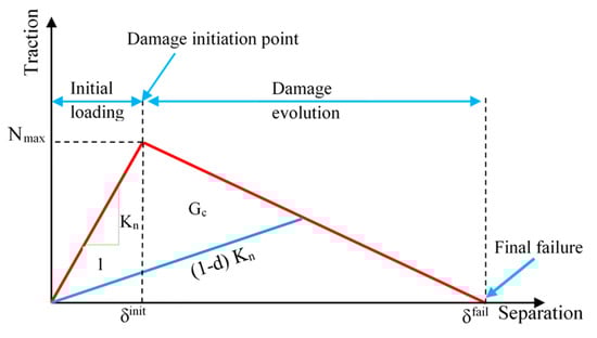 Traction-separation model of the adhesive element [].