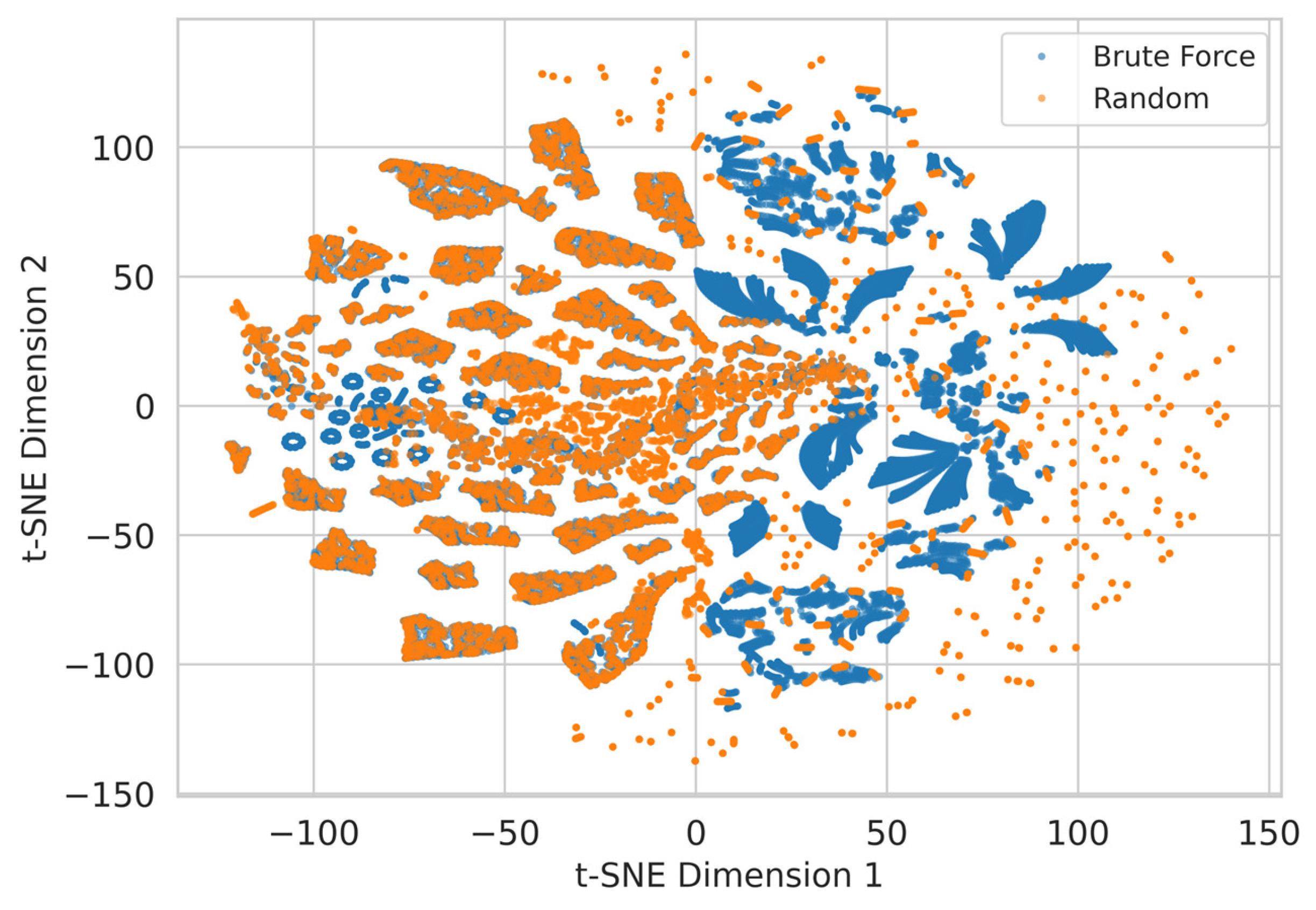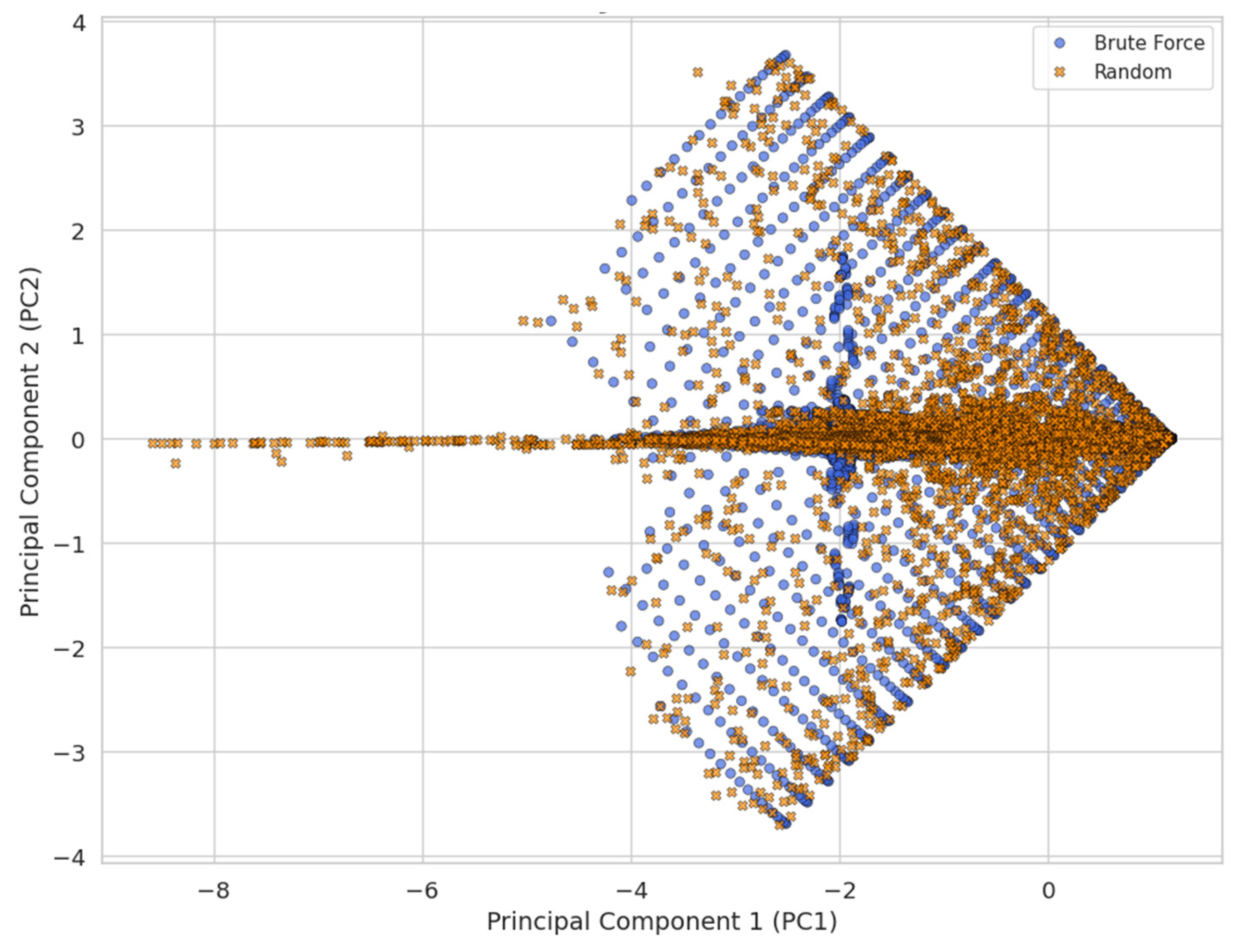 - A comparative evaluation of sampling strategies (brute-force vs. stochastic sampling) assessed using entropy metrics, PCA, t-SNE embeddings, and nearest-neighbor distance analyses to quantify dataset diversity and redundancy.