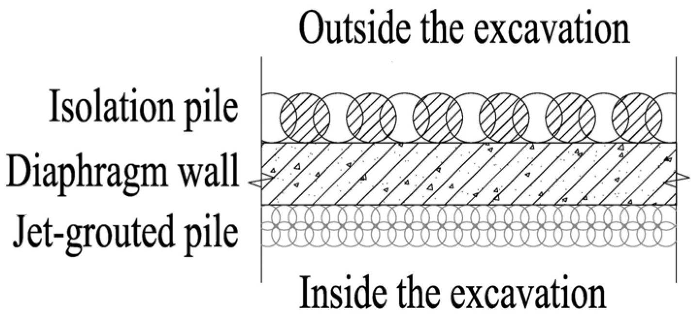- Liu, K.; Xu, X.B.; Hu, Q.; Bin Zeng, L.; Wang, J.C. 1 g Model Test on the Use of Isolation Piles for Tunnel Protection Adjacent to Soft Soil Excavation. Transp. Geotech. 2022, 35, 100790. [Google Scholar] [CrossRef]