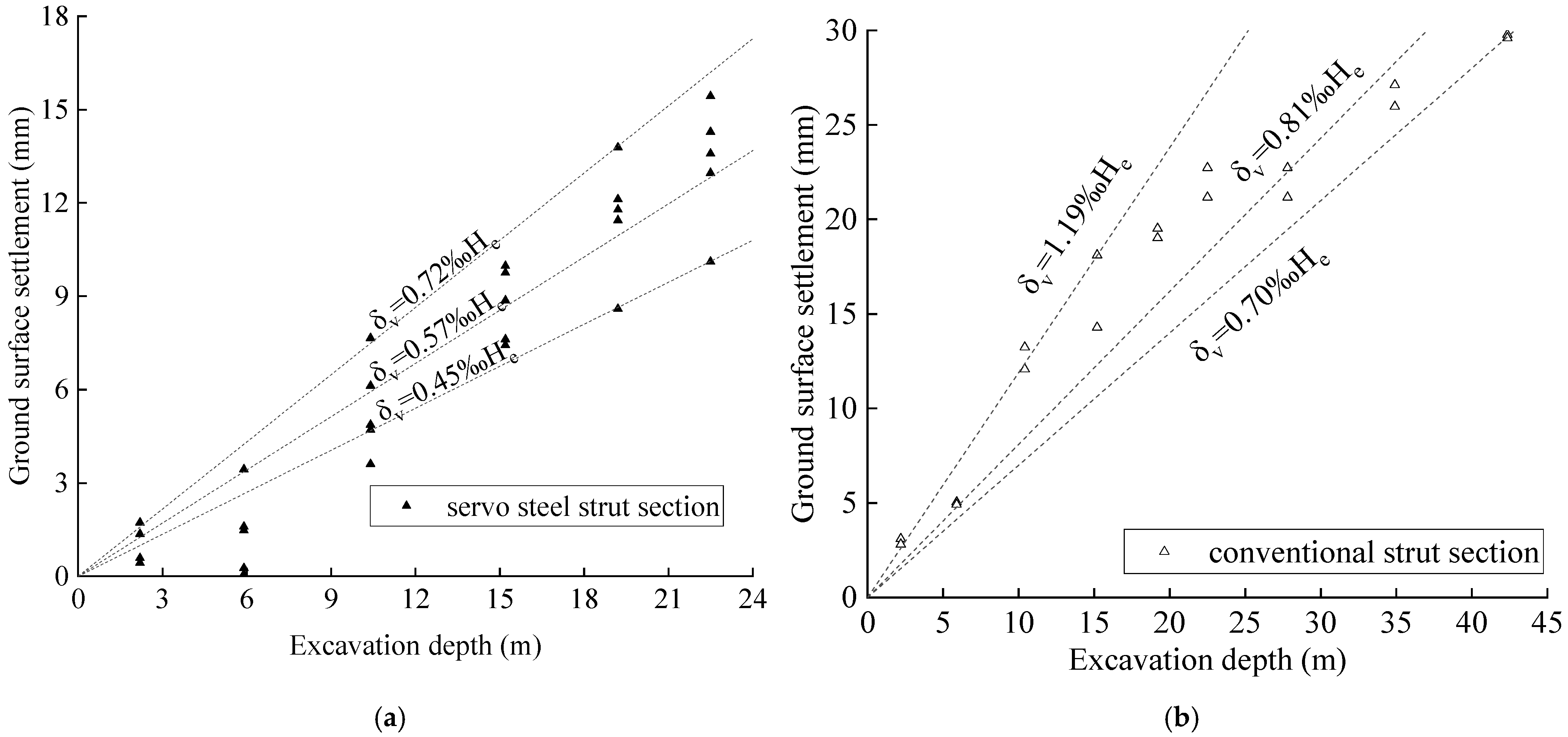 - Li, M.G.; Demeijer, O.; Chen, J.J. Effectiveness of servo struts in controlling excavation-induced wall deflection and ground settlement. Acta Geotech. 2020, 15, 2575–2590. [Google Scholar] [CrossRef]