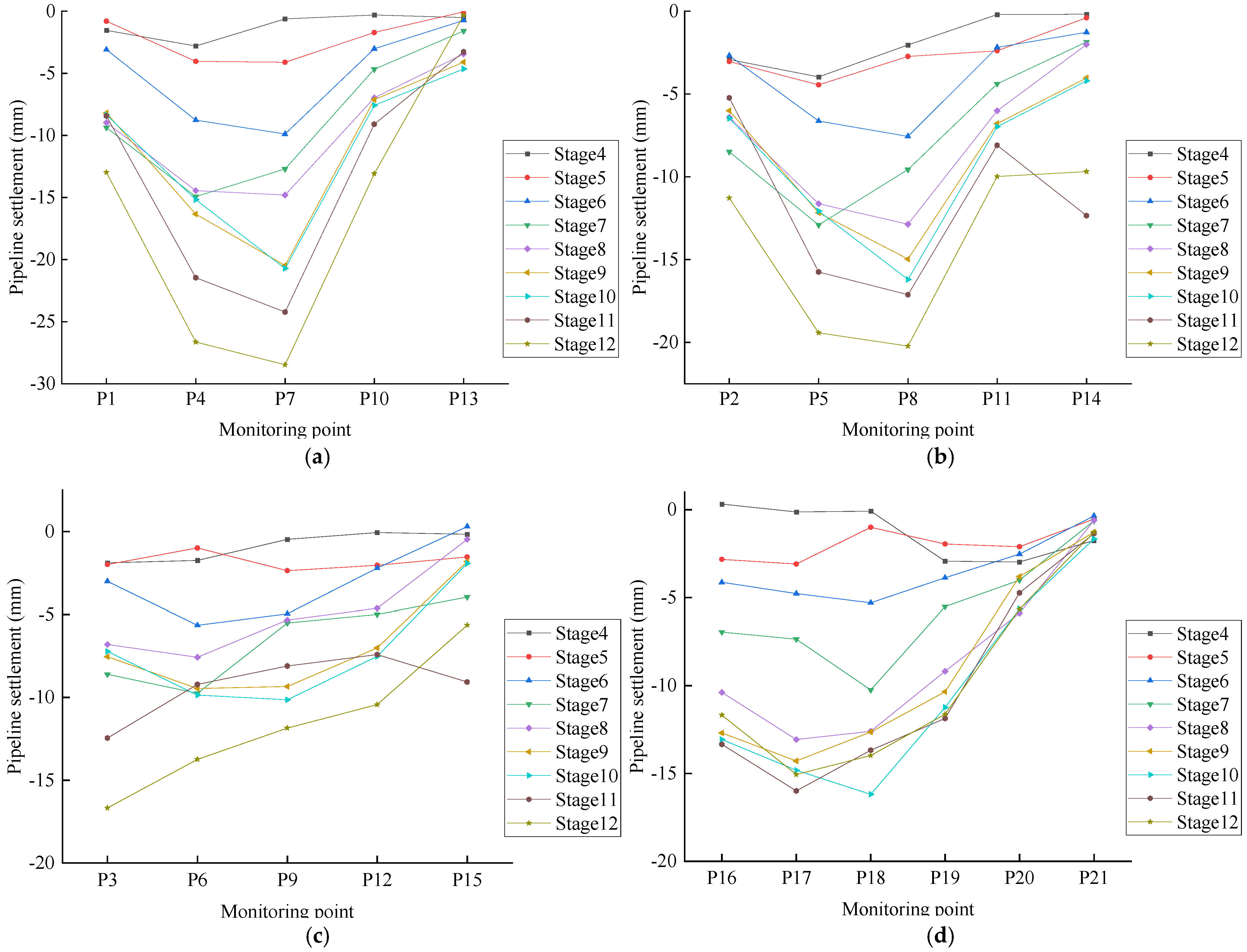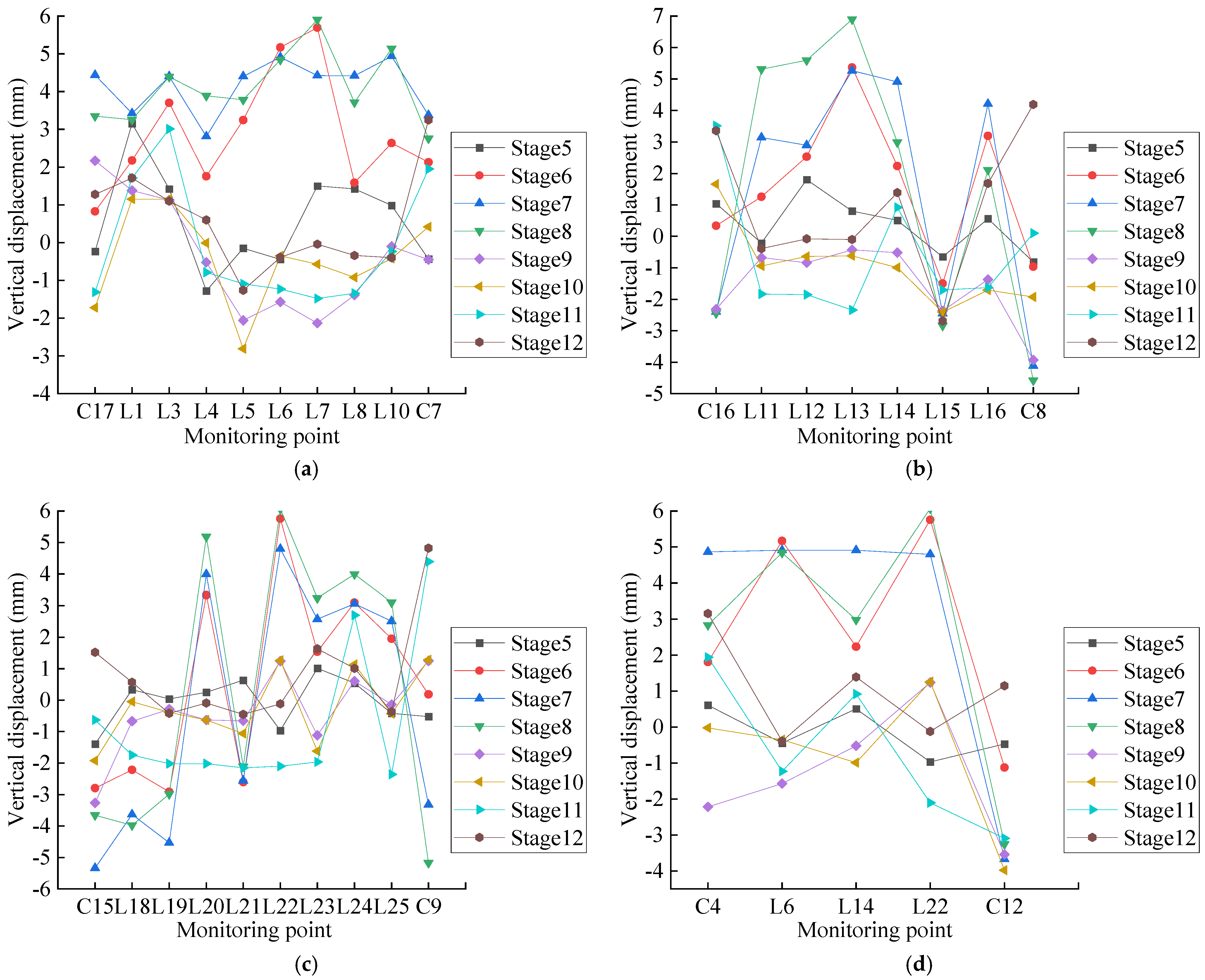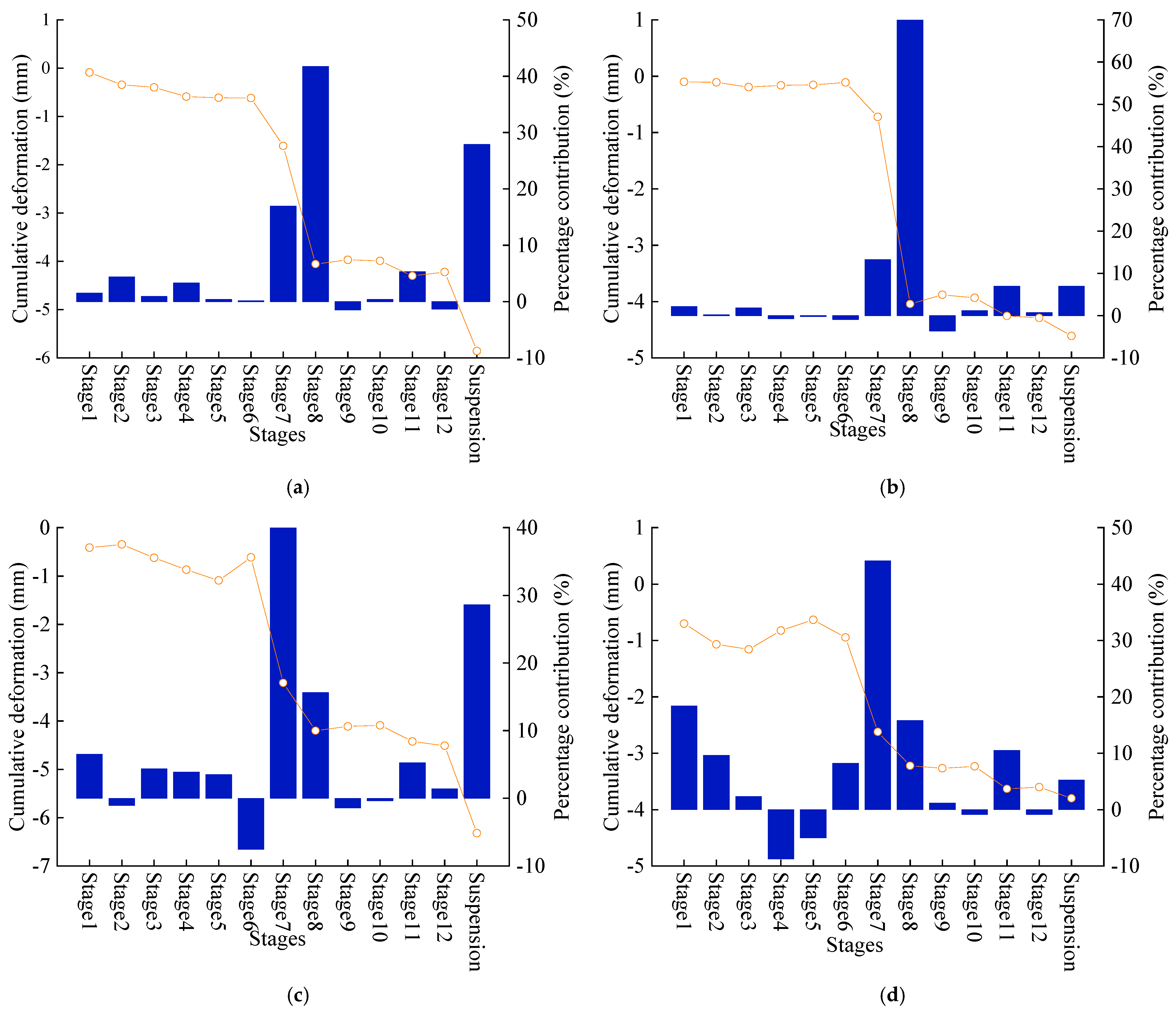 4.1. Phased Analysis of Metro Tunnel Deformation