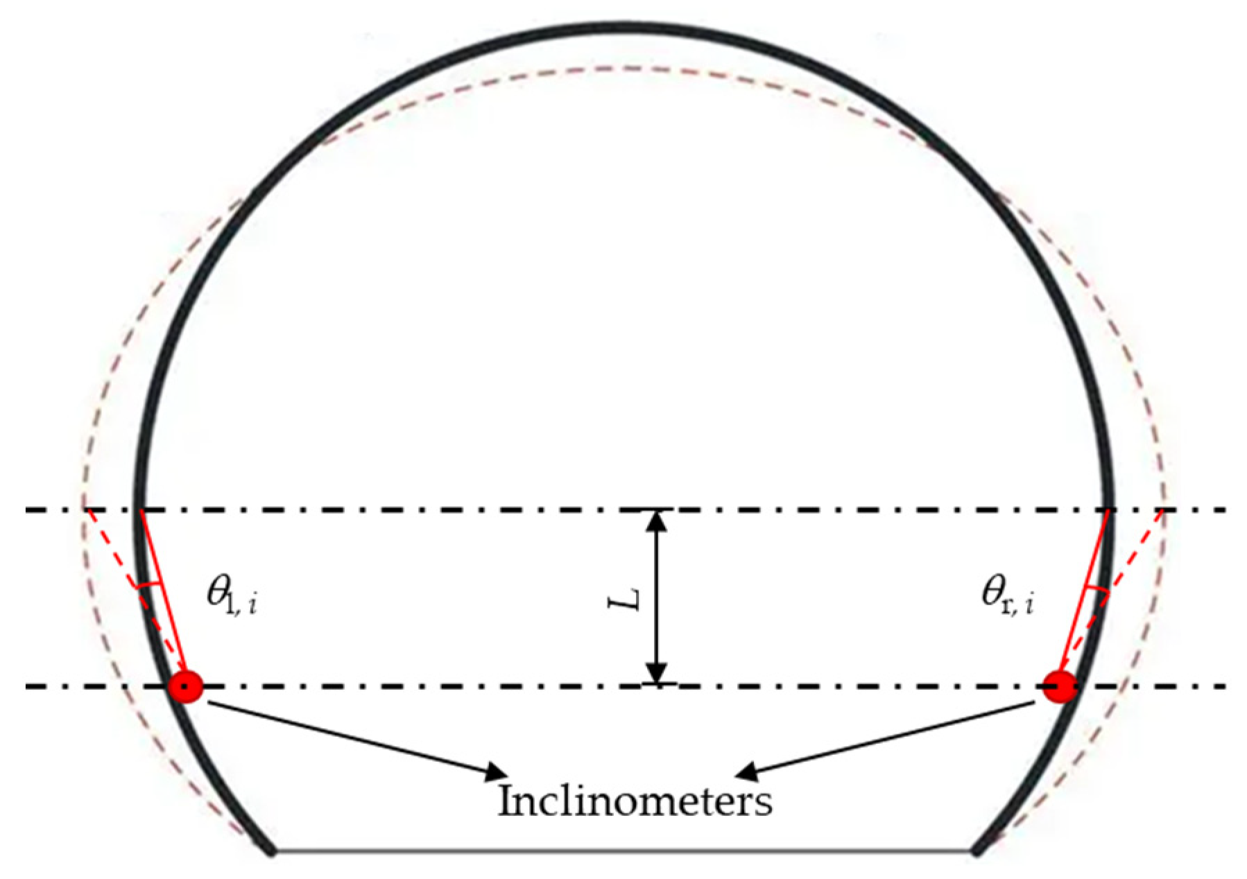 2.1. Tunnel Section Convergence Calculation on the Basis of the Inclination Angle