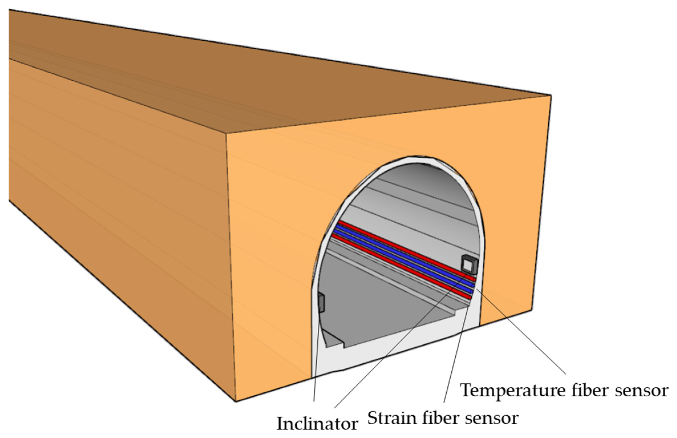 - Torres, B.; Payá-Zaforteza, I.; Barrera, D.; Alvarado, Y.A.; Calderón García, P.A.; Loayssa Lara, A.; Sagues García, M.; Zornoza, A.; Sales Maicas, S. High-speed railway tunnel monitoring using point, long gauge and distributed strain and temperature fiber optic sensors. Inf. Constr. 2015, 67, e071. [Google Scholar] [CrossRef]
