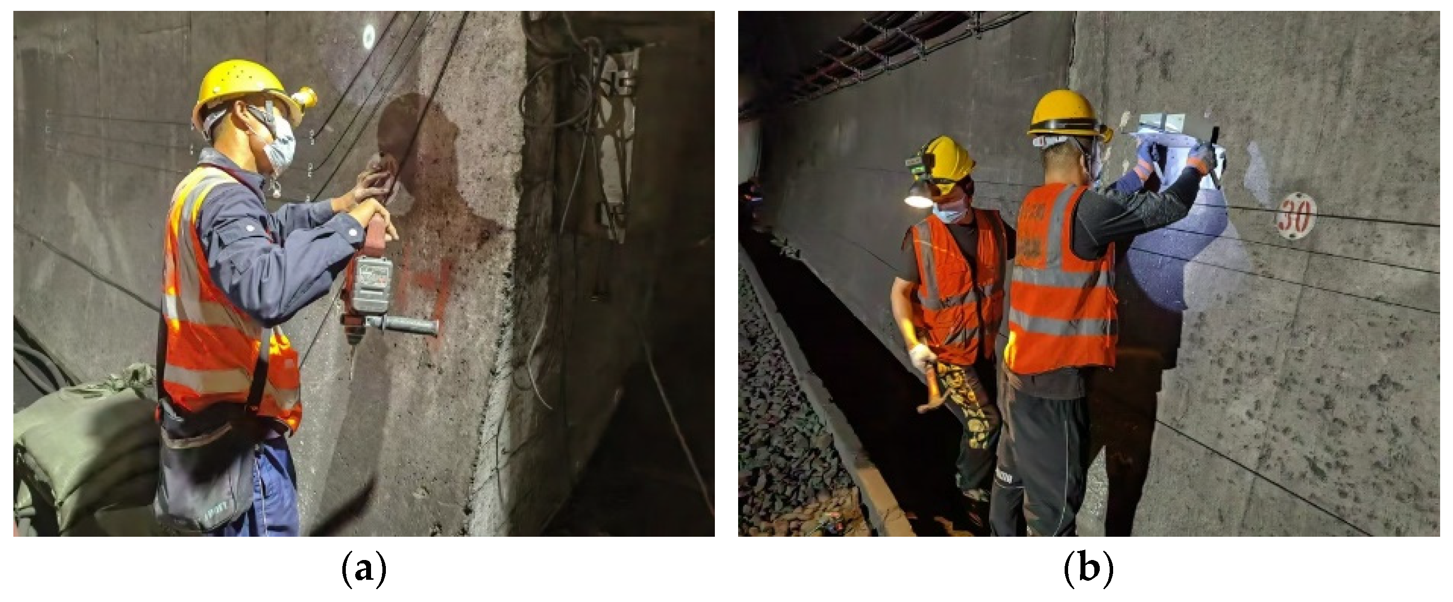 - Wang, X.; Shi, B.; Wei, G.; Chen, S.-E.; Zhu, H.; Wang, T. Monitoring the behavior of segment joints in a shield tunnel using distributed fiber optic sensors. Struct. Control Health Monit. 2017, 25, e2056. [Google Scholar] [CrossRef]