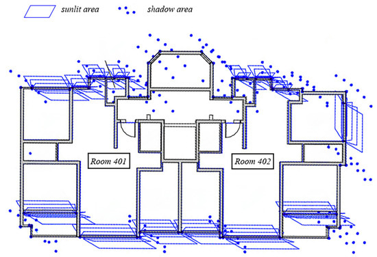 Result by Dynamo code for the illustration of shadow and direct sunlight at level 4, building 201.