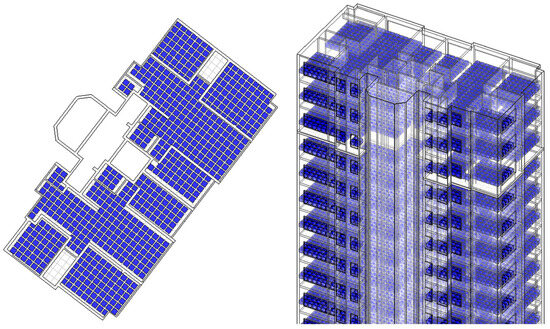 The same method is applied to calculate the shadow areas cast by surrounding buildings and upper floors. The program uses local environmental data to determine the sun’s position and corresponding sunlight vector at a specific time. Vectors aligned with the sunlight direction are drawn from the top corner points of each building and projected onto the working plane. The Opening Border Top and Opening Border Bottom families are defined using respective lines and points, allowing consistent connection between projected elements. It is essential that the Opening Border Bottom family is moved onto the same level as the calculated working plane. To include shadows from upper floors, surfaces are connected accordingly, completing the shadow generation process.