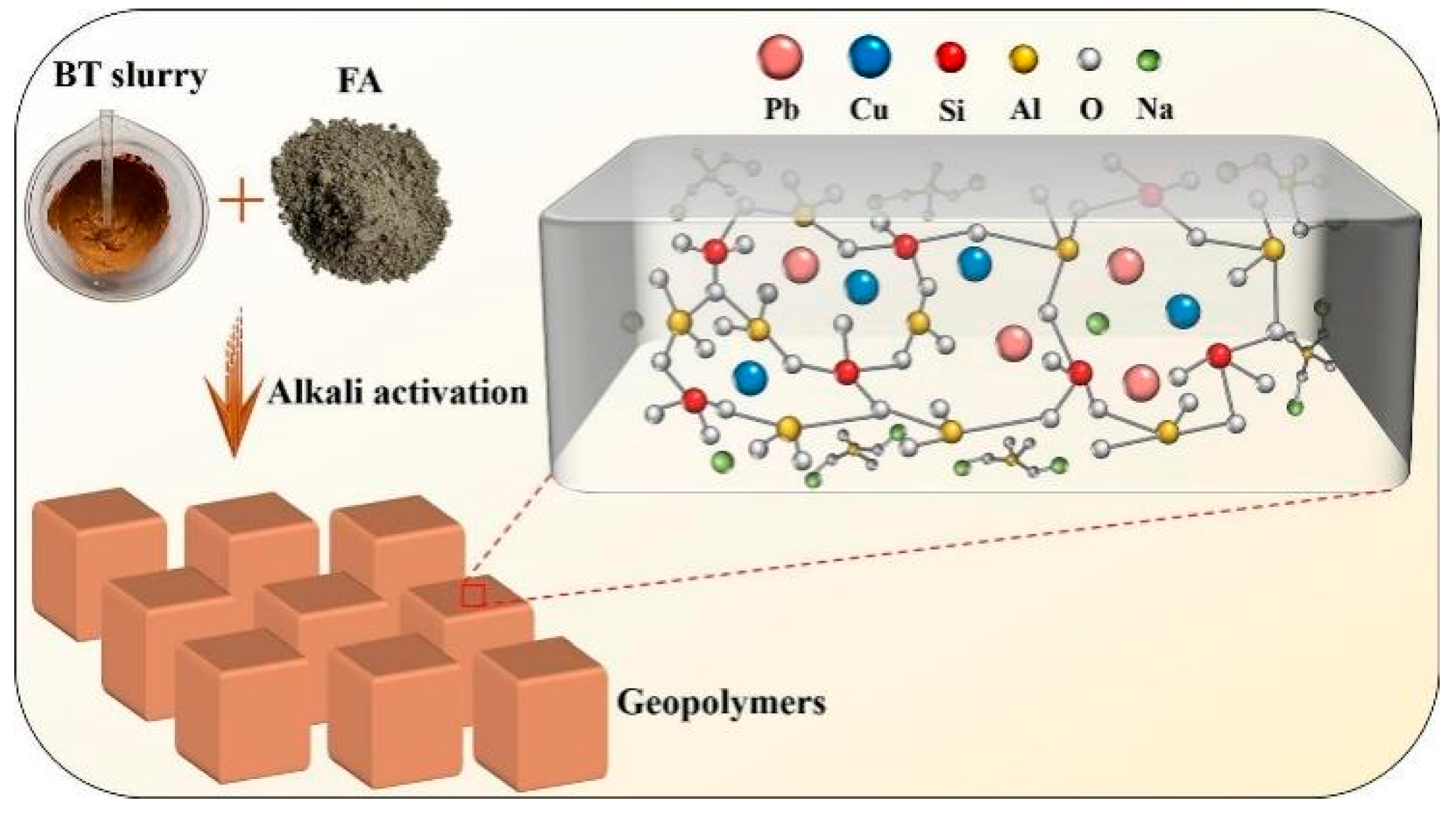 - Guo, B.; Pan, D.; Liu, B.; Volinsky, A.A.; Fincan, M.; Du, J.; Zhang, S. Immobilization Mechanism of Pb in Fly Ash-Based Geopolymer. Constr. Build. Mater. 2017, 134, 123–130. [Google Scholar] [CrossRef]