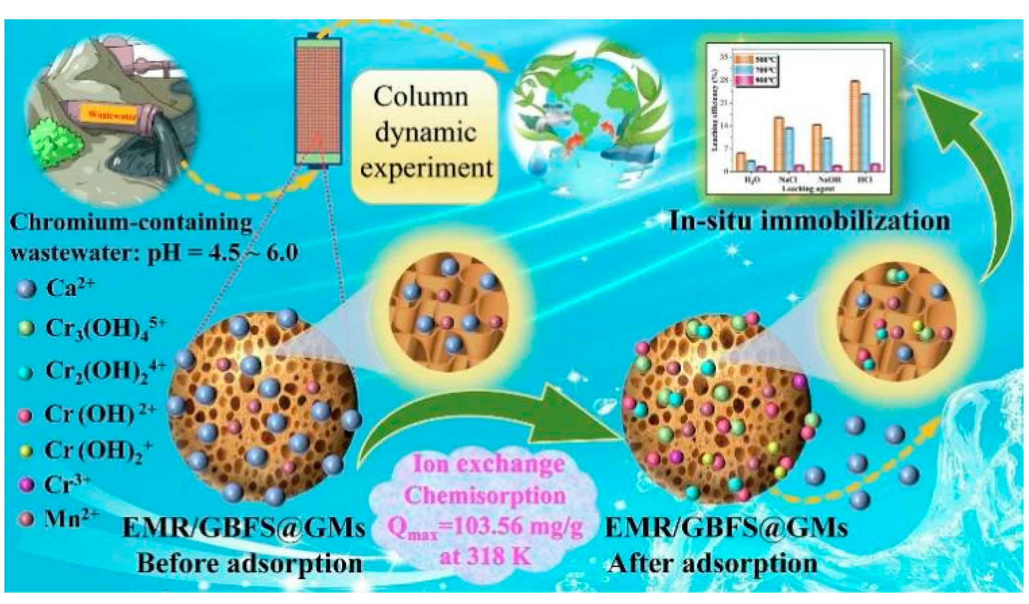 - Ji, Z.; Pei, Y. Immobilization Efficiency and Mechanism of Metal Cations (Cd2+, Pb2+ and Zn2+) and Anions (AsO43- and Cr2O72-) in Wastes-Based Geopolymer. J. Hazard. Mater. 2020, 384, 121290. [Google Scholar] [CrossRef] [PubMed]