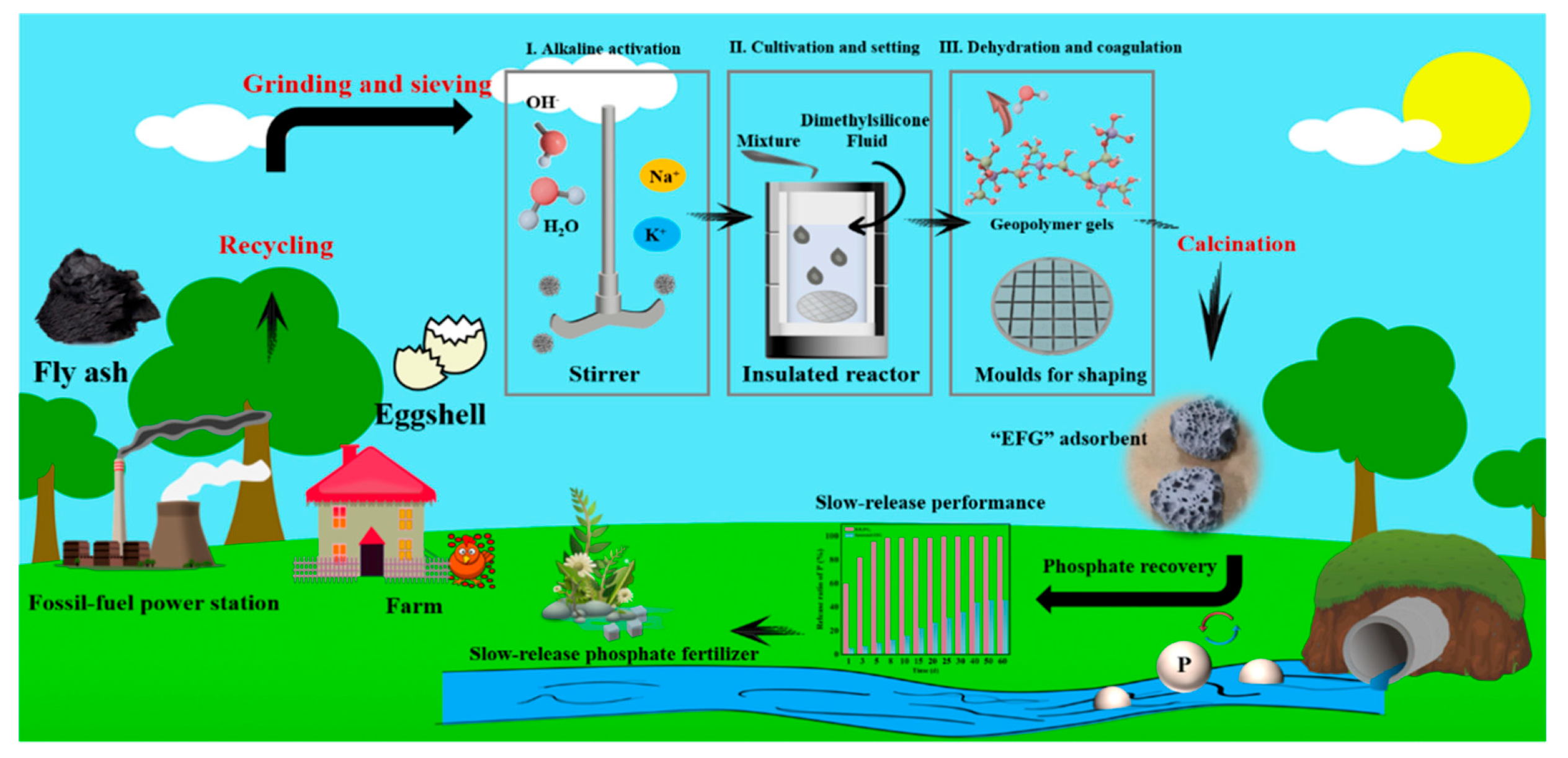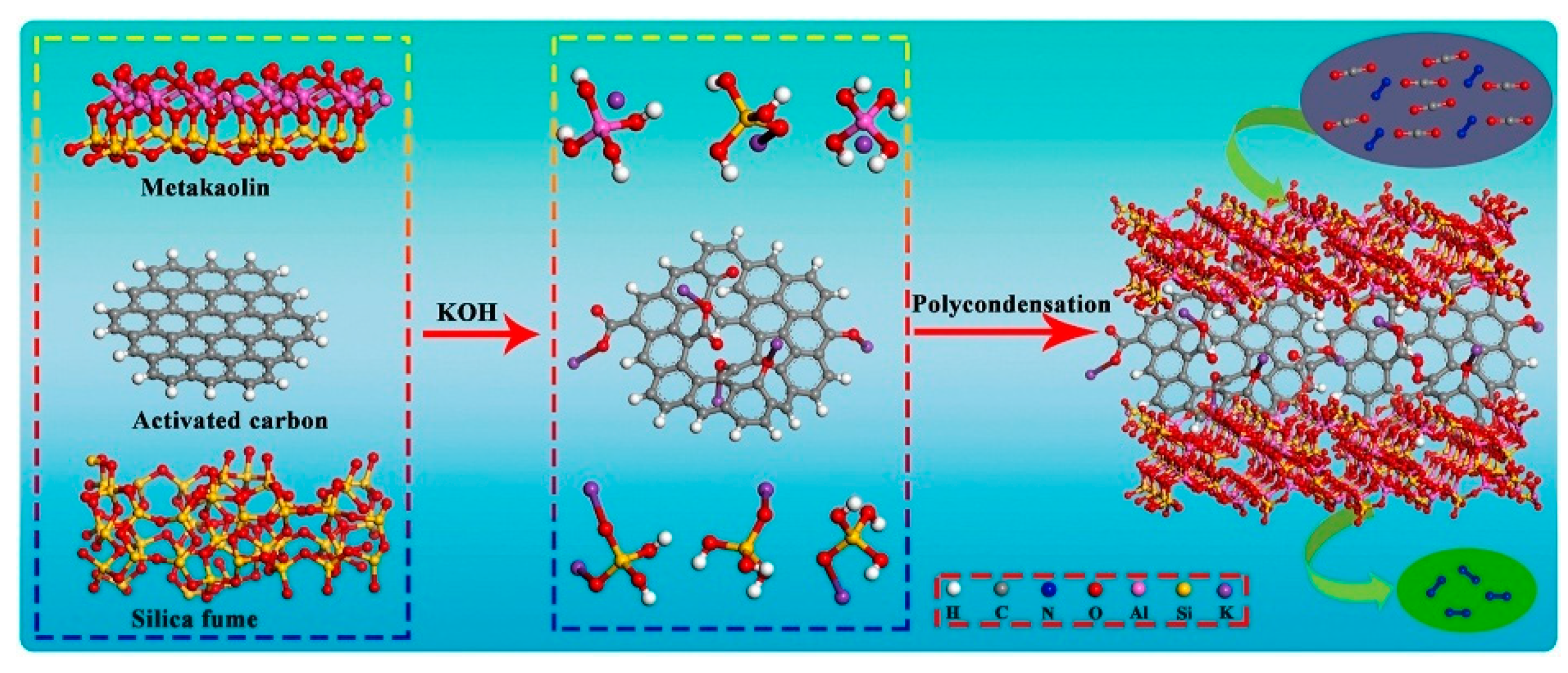 - Sun, M.; Ma, L.; Dai, Q.; Yang, J.; Xie, L.; Hu, Y.; Duan, L.; Yan, X.; Zhou, G.; Zeng, L.; et al. Preparation of Functional Geopolymers from Municipal Solid Waste Incineration Fly Ash: An Approach Combining Experimental and Computational Simulation Studies. J. Environ. Manag. 2024, 355, 120226. [Google Scholar] [CrossRef] [PubMed]