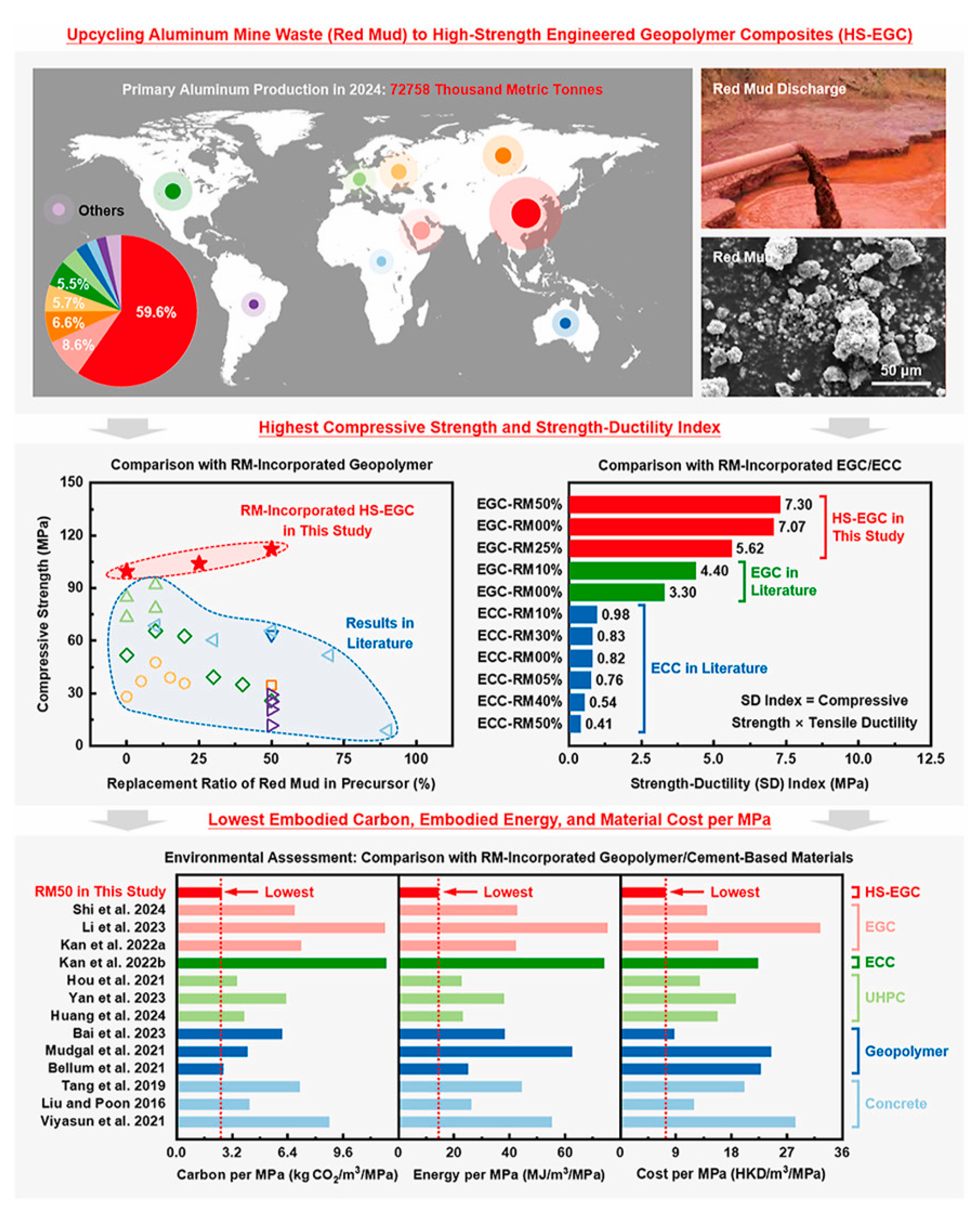 - Zhang, B.; Feng, Y.; Zhou, X.; Lai, D.; Zhong, H.; Yu, T.; Liang, J.; Xie, J. Dynamic Mechanical Behaviour and Life Cycle Assessment of Rubberised Solid Waste-Based Geopolymer Concrete. J. Clean. Prod. 2025, 501, 145247. [Google Scholar] [CrossRef]