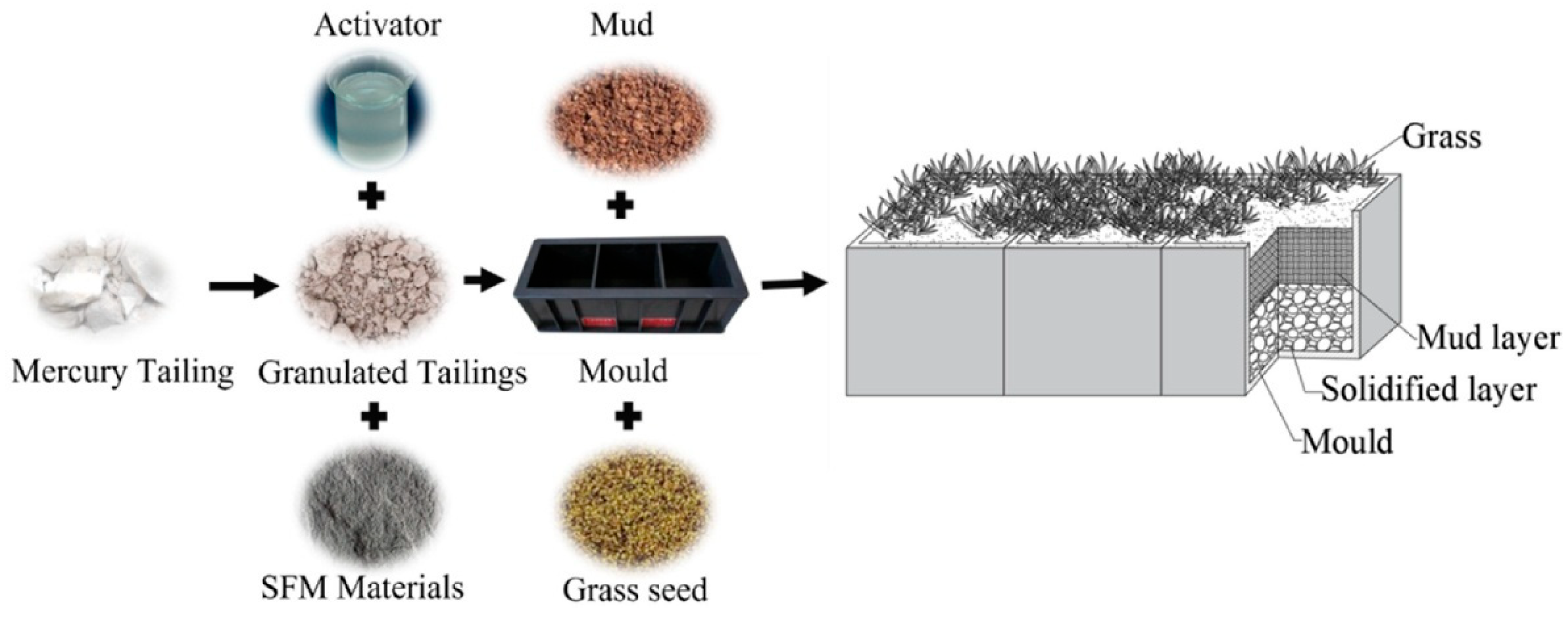 - Zhou, X.; Zhang, Z.; Yang, H. Stabilization/Solidification Mechanisms of Tin Tailings and Fuming Slag-Based Geopolymers for Different Heavy Metals. Front. Environ. Sci. Eng. 2024, 18, 56. [Google Scholar] [CrossRef]