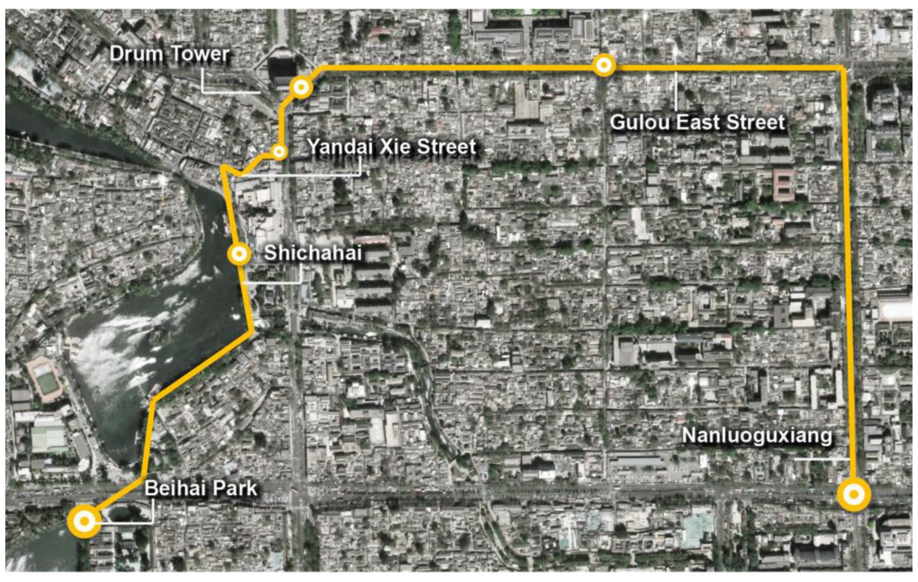 | Beijing | Route 1 | Nanluoguxiang → Gulou East Street → Drum Tower → Yandai Xie Street → Shichahai → Beihai Park | Hutong culture, imperial heritage, scenic lake |