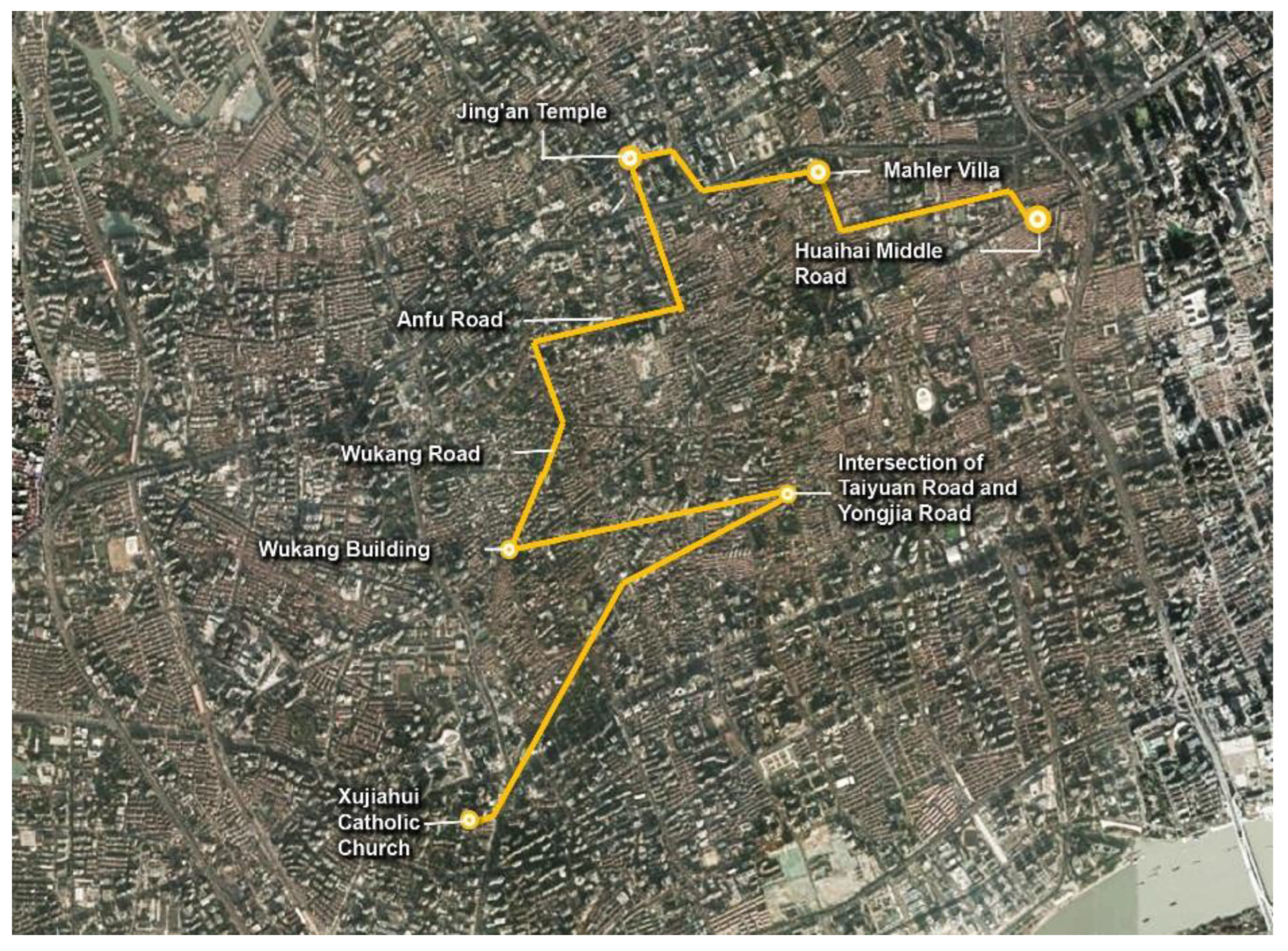 | Shanghai | Route 4 | Xujiahui Catholic Church → Intersection of Taiyuan Road and Yongjia Road → Wukang Building → Wukang Road → Anfu Road → Jing’an Temple → Moller Villa → Huaihai Middle Road | Iconic skyline, colonial architecture, lifestyle |