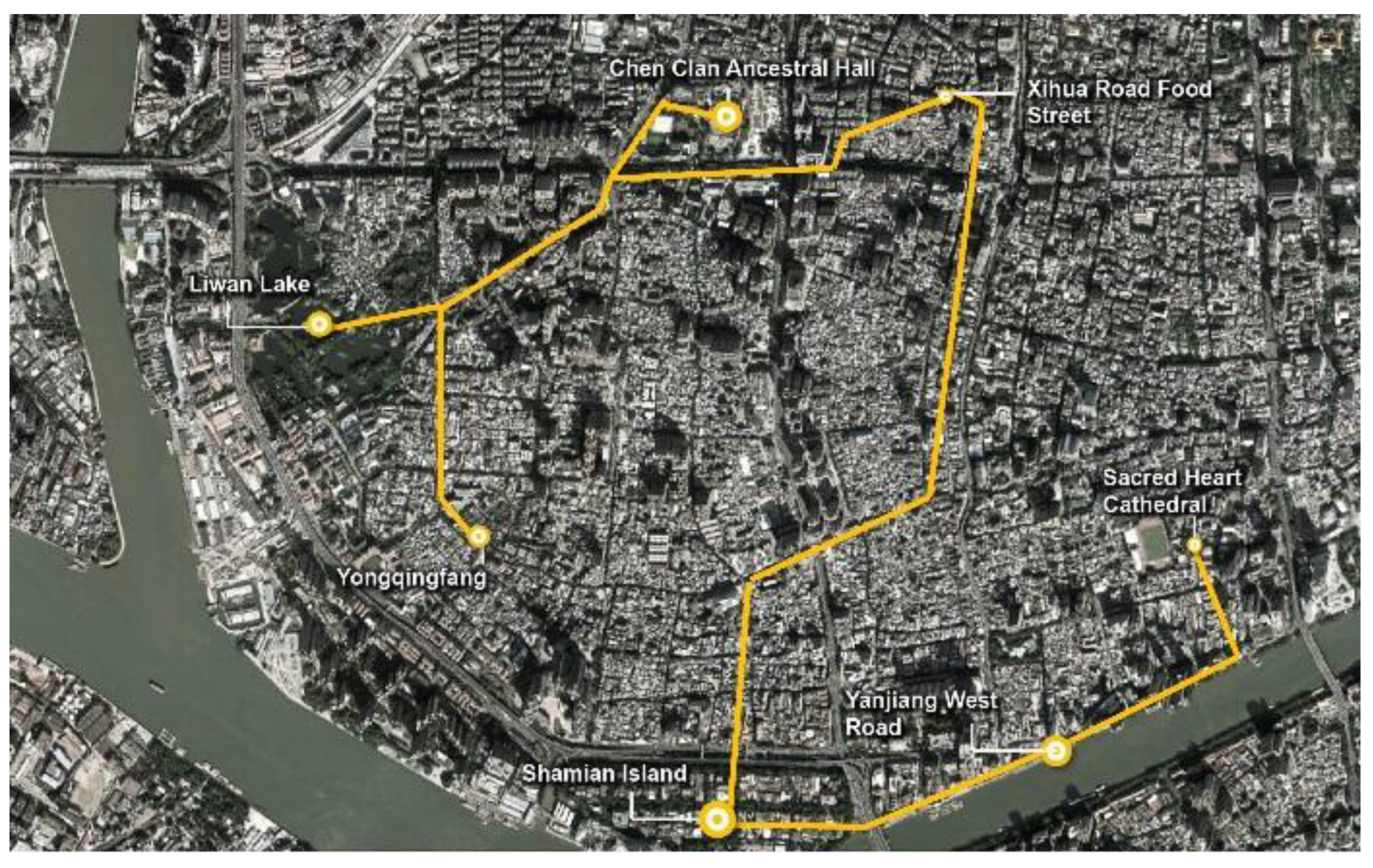 | Route 9 | Chen Clan Ancestral Hall → Liwan Lake → Yongqingfang → Xihua Road Food Street → Shamian Island → Yanjiang West Road → Sacred Heart Cathedral | Multi-day exploration, heritage & modern skyline |