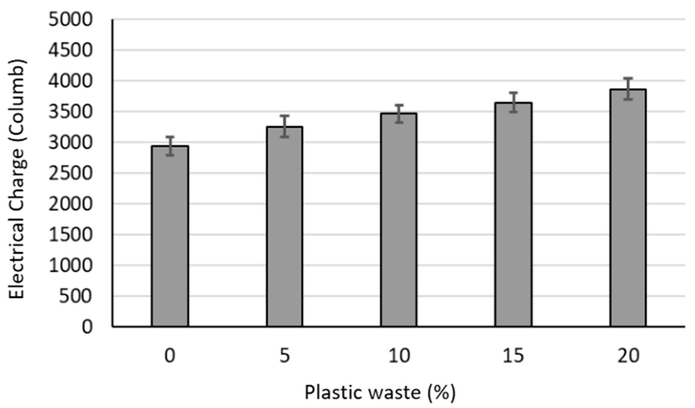 - The electrical charge passing through PCC specimens using the rapid chloride permeability test increased with an increasing amount of plastic waste. The maximum increase in the electrical charge was 24% for the mixture with 20% plastic waste.