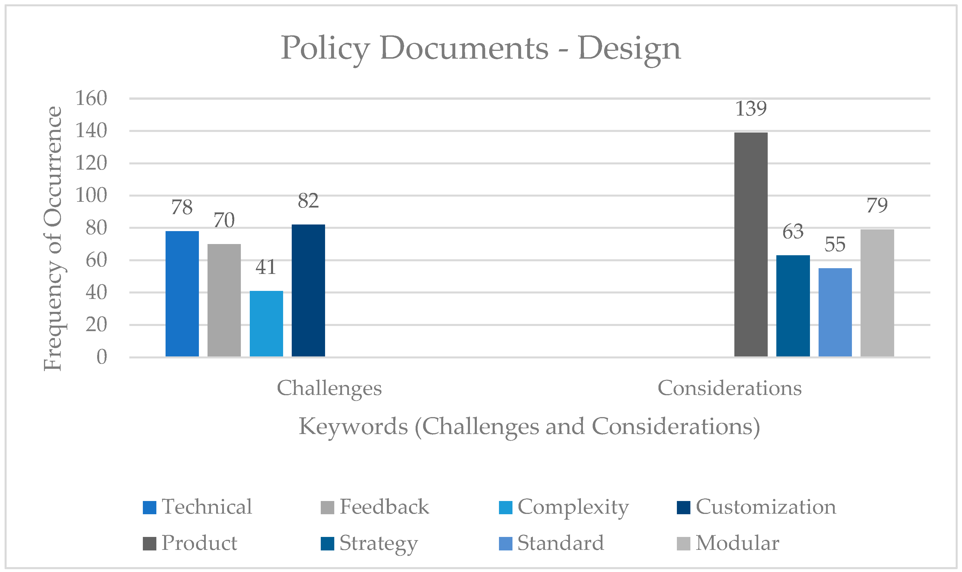 Figure 6. Frequency of the most commonly used keywords in policy documents for design aspects.