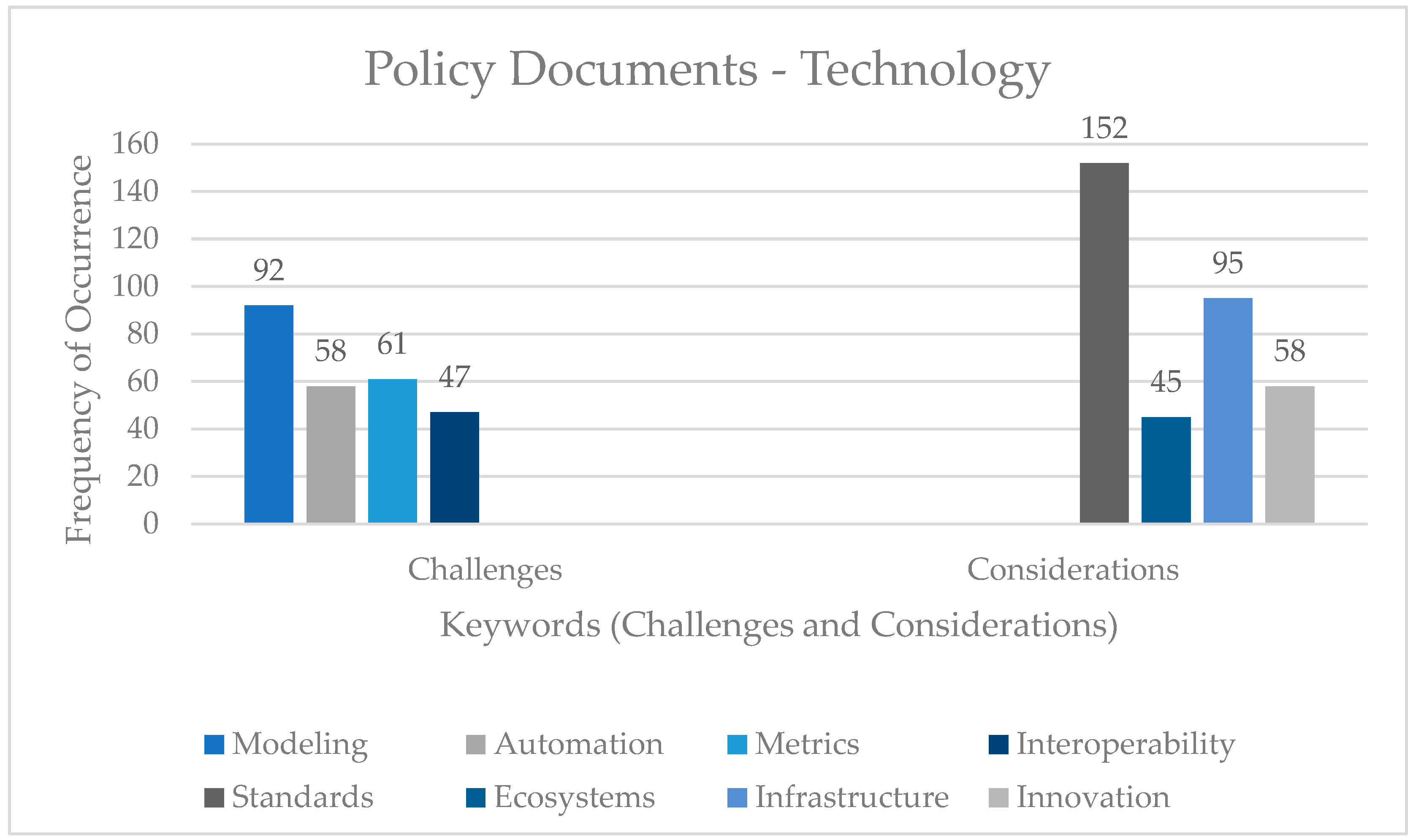 Figure 7. Frequency of the most commonly used keywords in policy documents for technological aspects.