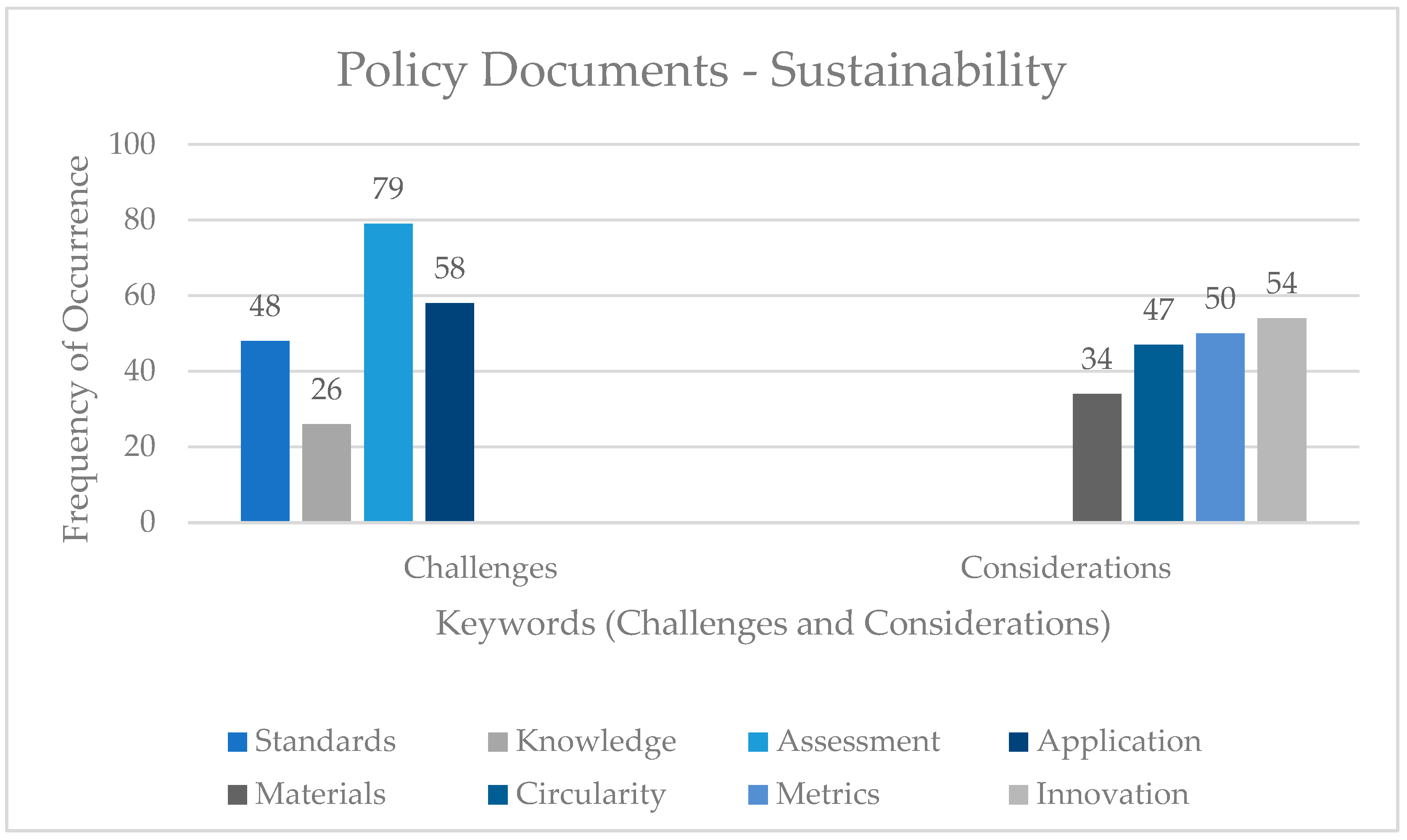 Figure 10. Frequency of the most commonly used keywords in policy documents for sustainability aspects.