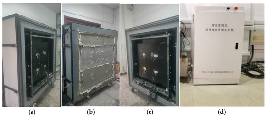 Laboratory tests were conducted using the IMWT-1515 intelligent steady-state heat transfer measurement system, produced by IMPAL (Tianjin) Instrument & Control Equipment Co., Ltd. This system’s primary components include a specimen rack, cold box, hot box, data acquisition system, and computer control system, as shown in
