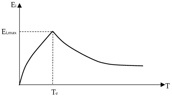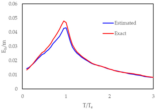 As can be seen from Figure 2, hysteretic energy spectra have a similar shape to input energy spectra, whose schematic representation is given in Figure 1, and reach their maximum value when T = Te. For the assessment of the hysteretic energy, a common approach is to estimate it through the input energy as given in Equation (8). The ratio between hysteretic energy and input energy, termed α, may be estimated by means of the displacement ductility demand.
