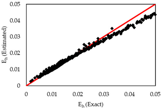 The scatter plot of hysteretic energy demand computed by nonlinear time history analyses and estimated by Equation (12) is given in Figure 8. The proportion of variance was calculated as R2 = 97%.
