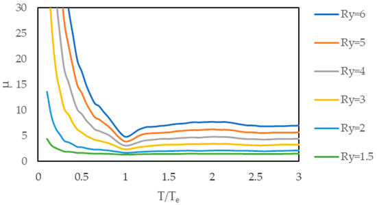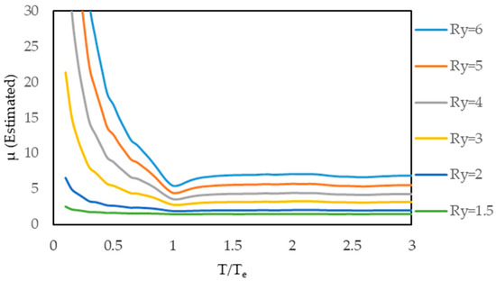 Figure 13 shows the mean calculated ductility demand values for different strength levels. Mean ductility demand values for each T/Te ratio were calculated regardless of soil type, since the distribution of ductility demand is similar for all considered soil types.