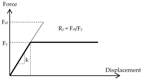 where Fy and uy represent the structural force and displacement corresponding to the yielding of the elastoplastic SDOF system whose force-displacement relationship is given in Figure 14.