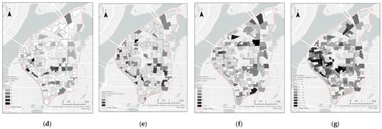 Based on the service facility configuration in the central area of Nanchang’s old city, the 186 communities within the study area were graded into nine levels of service facility configuration, as shown in Table 3.