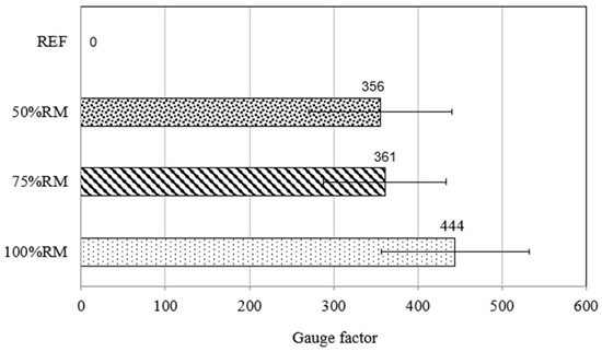Results of gauge factor of cementitious composites with different contents of RM. Adapted from Oliveira et al. [40], Copyright 2025, with permission from Springer.