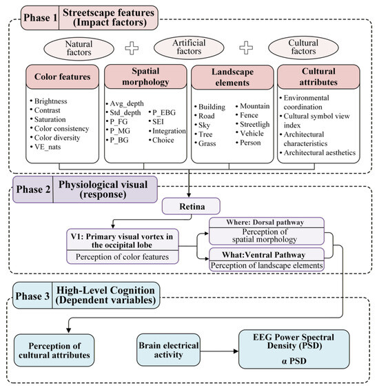 | V1 (i.e., the primary visual cortex) | A subregion of the visual cortex, it is the first cortical area to receive input from the retina, corresponding to Brodmann Area 17. It is responsible for the initial analysis of visual features such as edges, orientation, and contrast. | Responsible for the primary cortical processing of visual features during streetscape perception. |