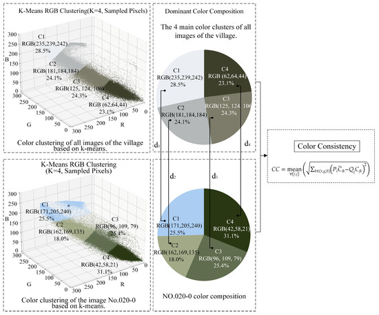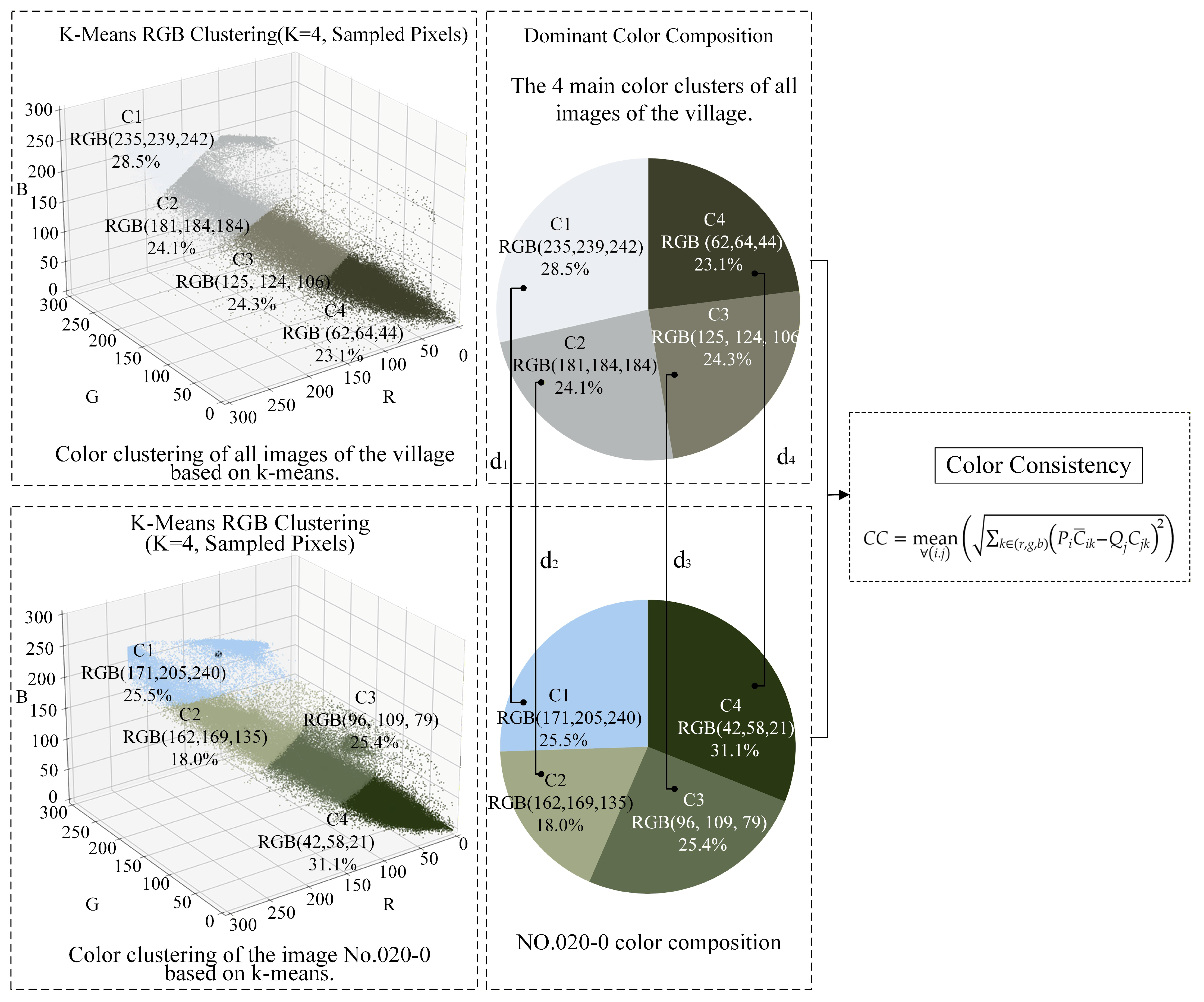 | 4 | Color consistency | k-means clustering (k = 4) [7] | Equation (4) | |