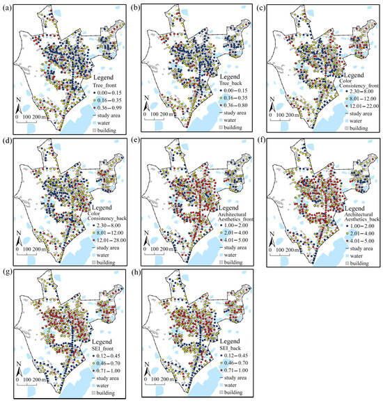 - Rui, Q.; Cheng, H. Quantifying the spatial quality of urban streets with open street view images: A case study of the main urban area of Fuzhou. Ecol. Indic. 2023, 156, 111204. [Google Scholar] [CrossRef]