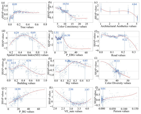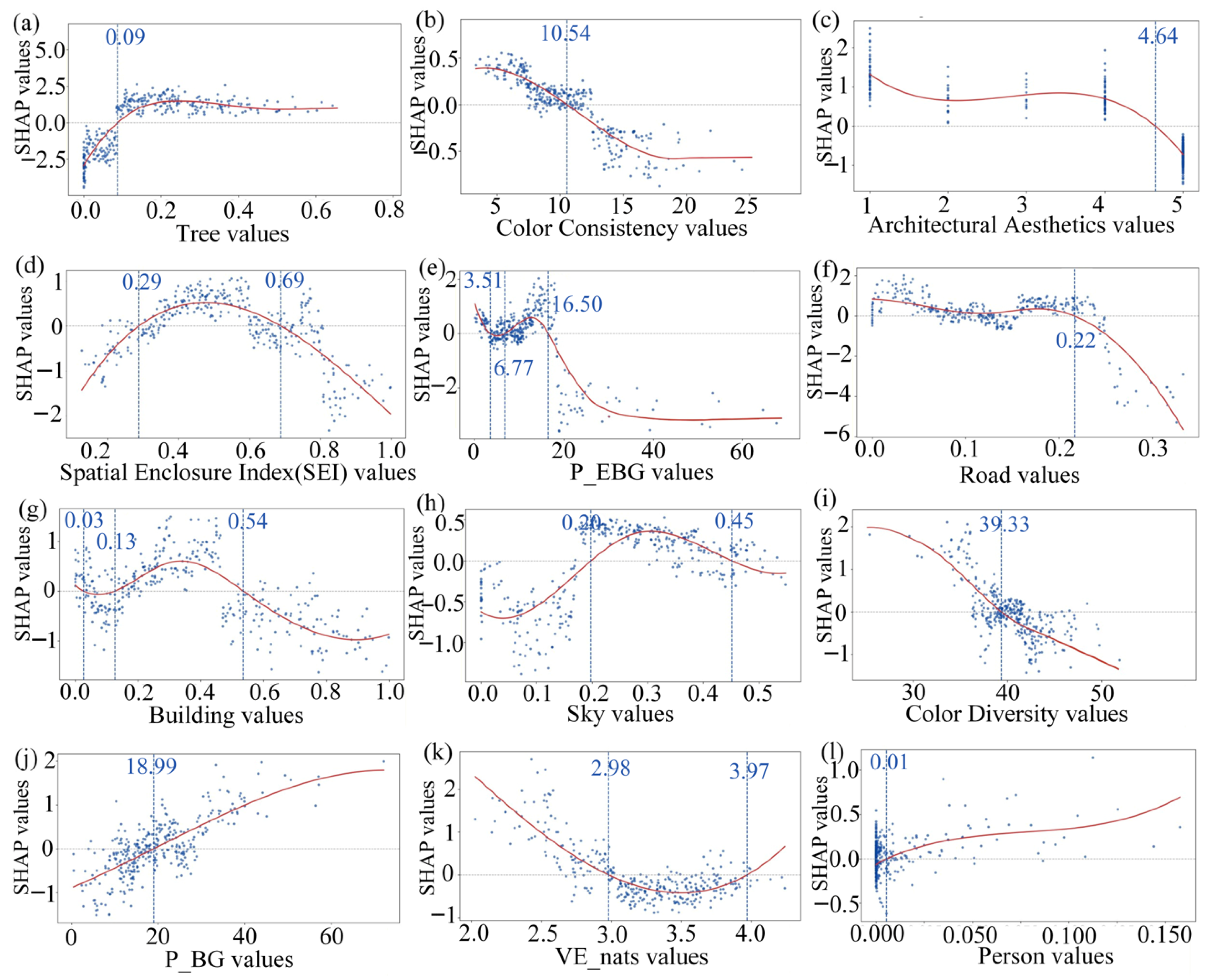 3.3.3. Nonlinear Effects of Streetscape Elements